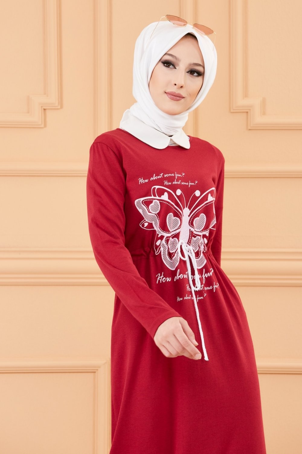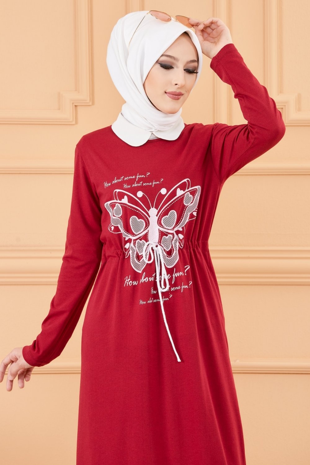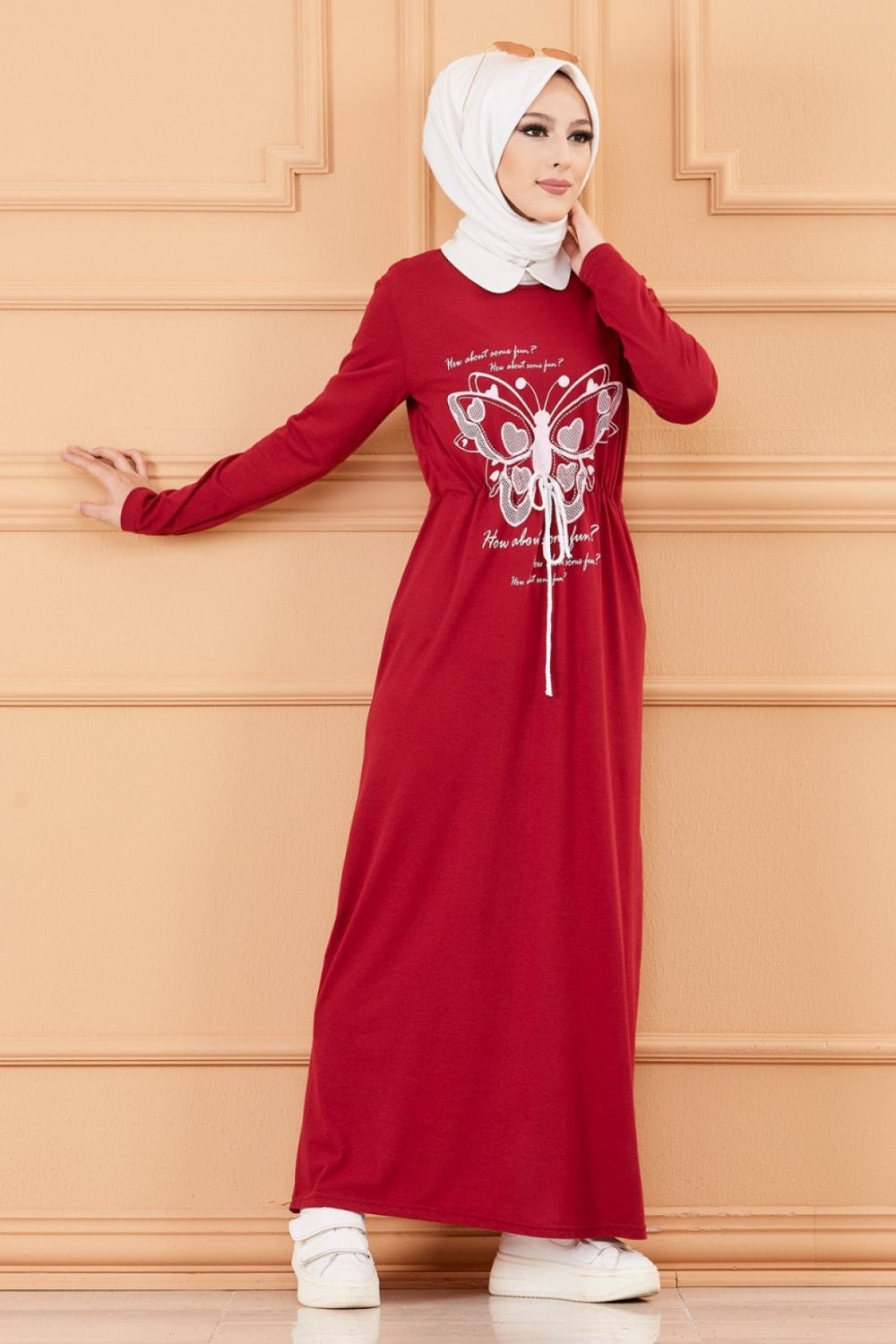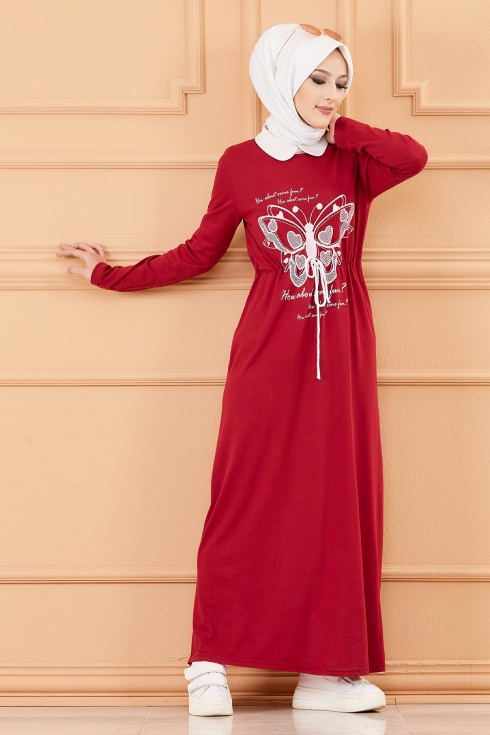 Robe decontractee imprimee pour femme (Mode Musulmane) - Couleur bordeaux