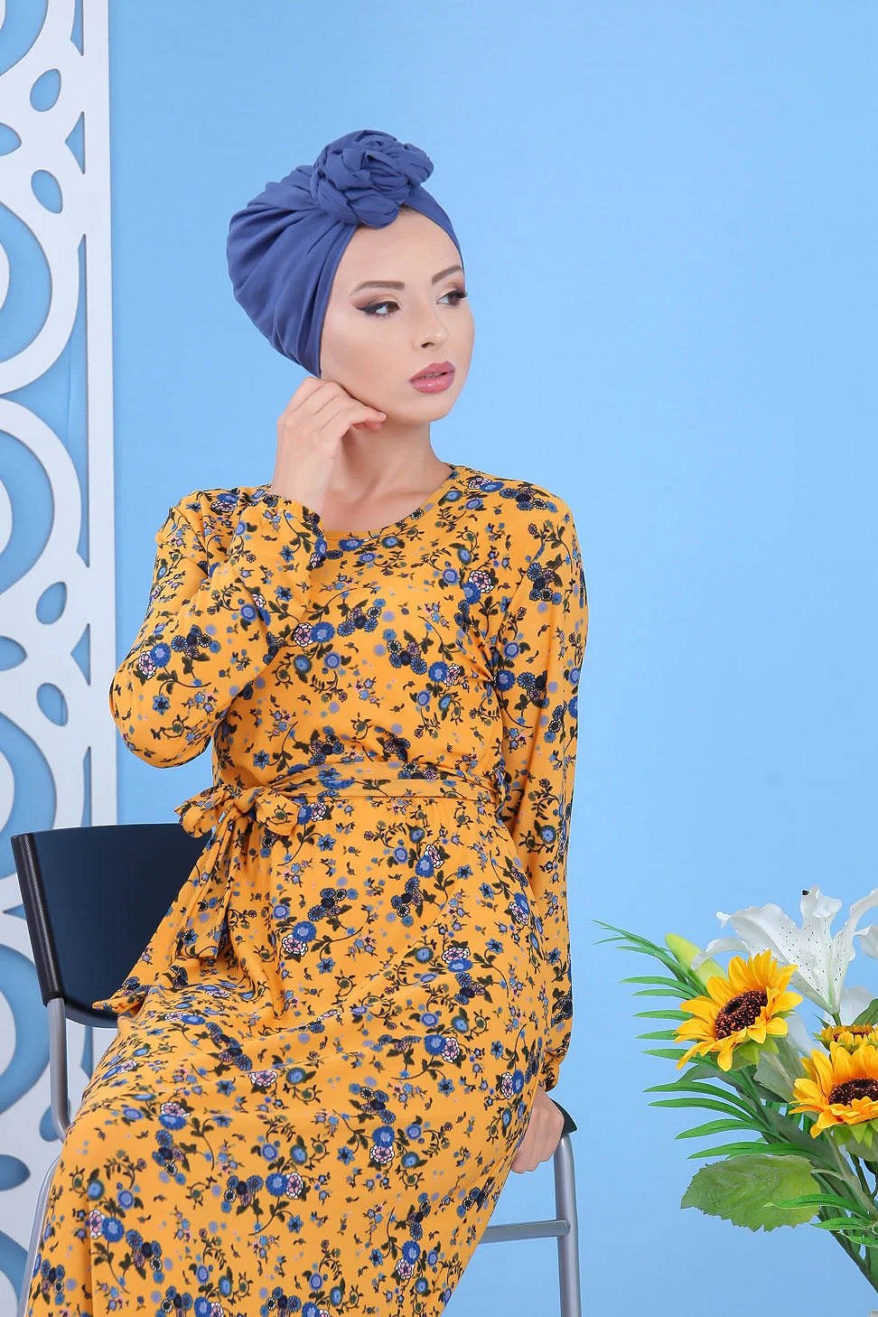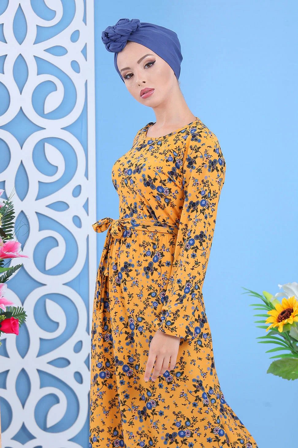 Cette robe chic est une pièce féminine. Col arrondi, manches longues, taille cintrée par un élastique avec une ceinture assortie.