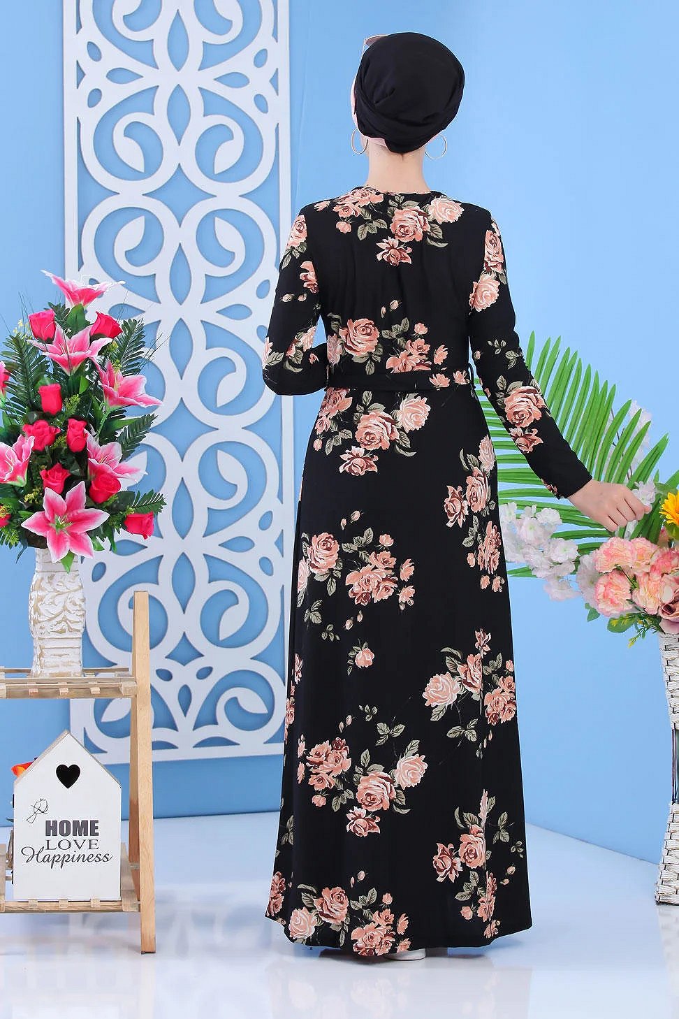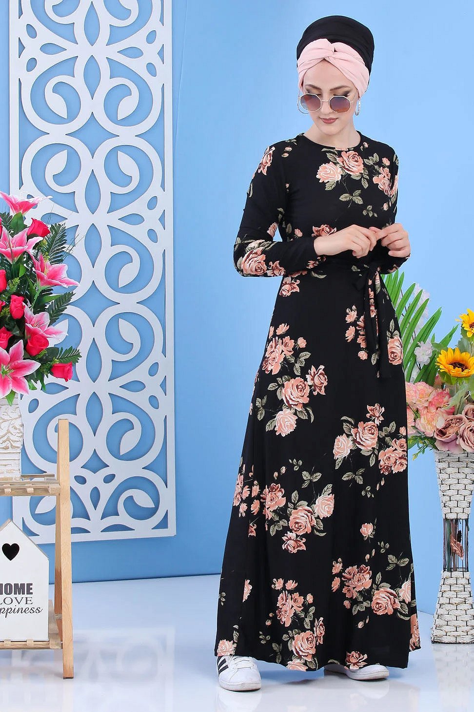 Robe décontractée maxi-longue noire fleurie pour femme Vetement & Accessoire