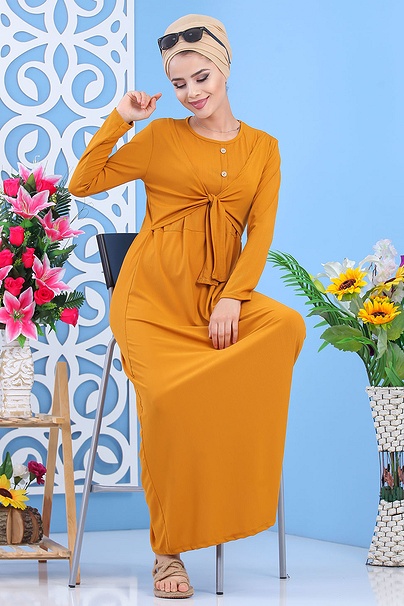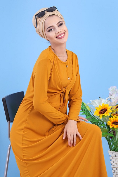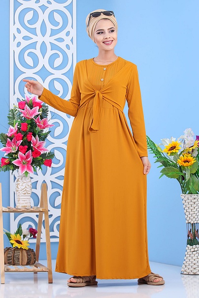 Robe decontractee style bolero pour femme - Couleur jaune moutarde