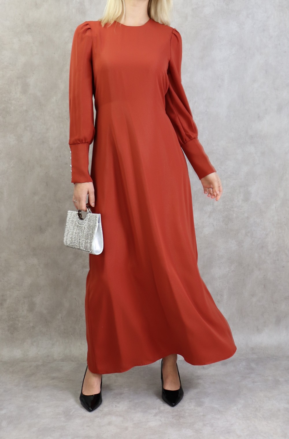 Robe élégante longue et fluide pour femme - Couleur rouge brique Vetement & Accessoire