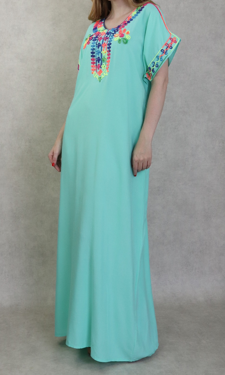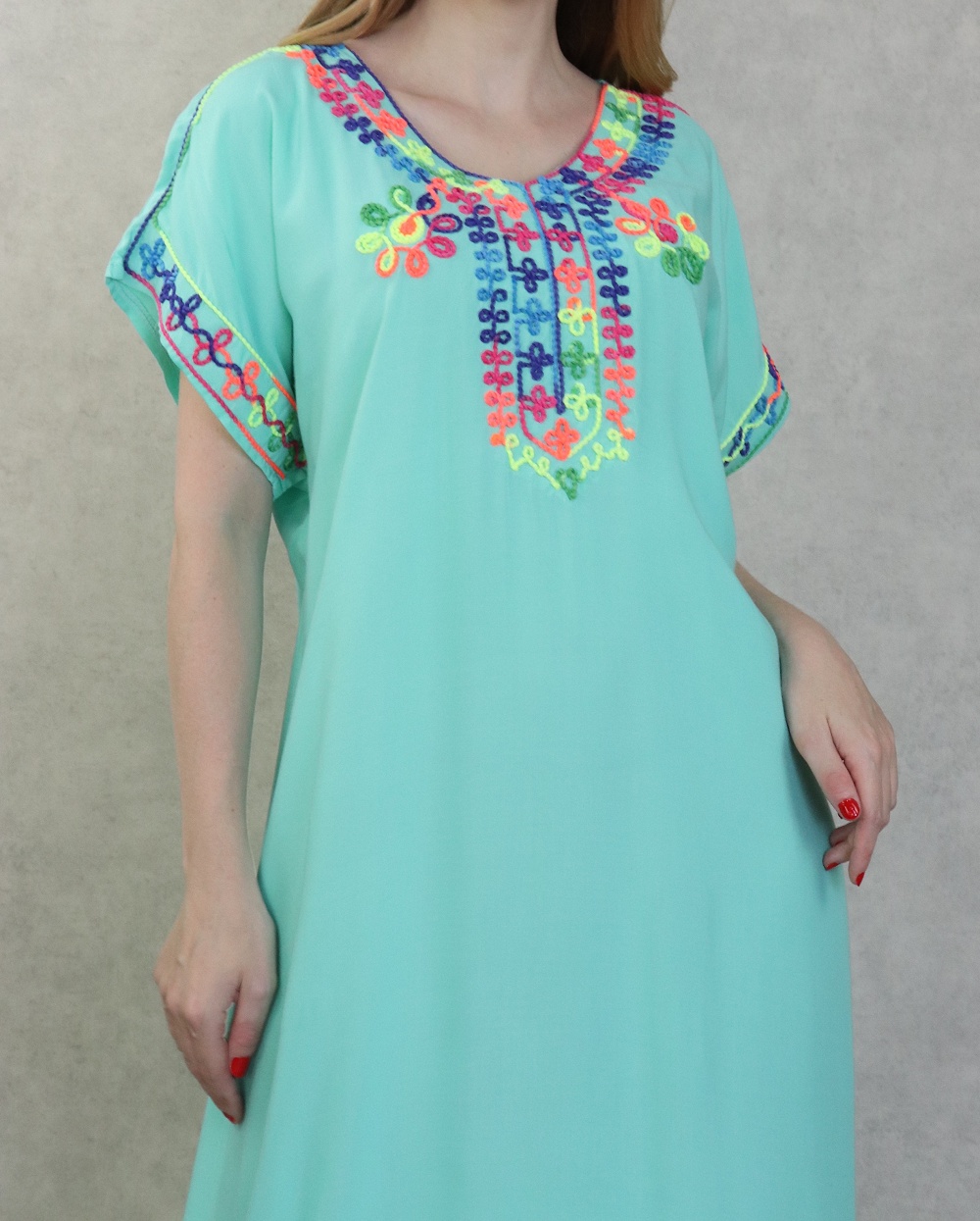 Robe tunisienne d'été longue manches courtes avec broderies - Couleur marron - REF. 32584 (26.00 €)