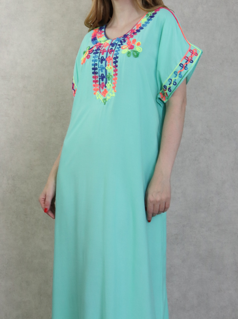 Robe orientale longue à strass et broderies en coton pour femme - Couleur Bleu - REF. 33422 (25.00 €)