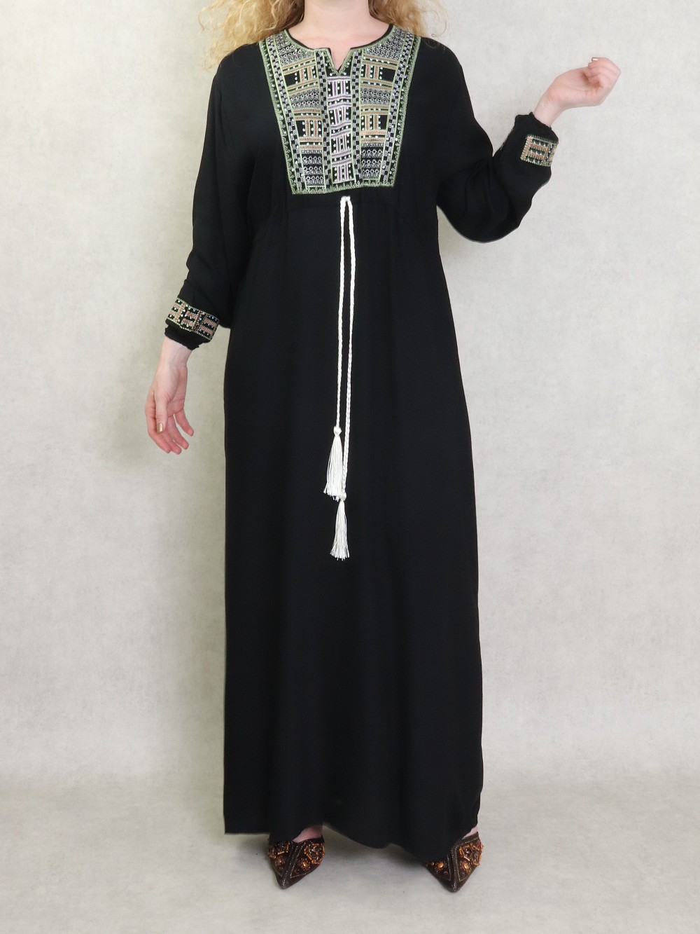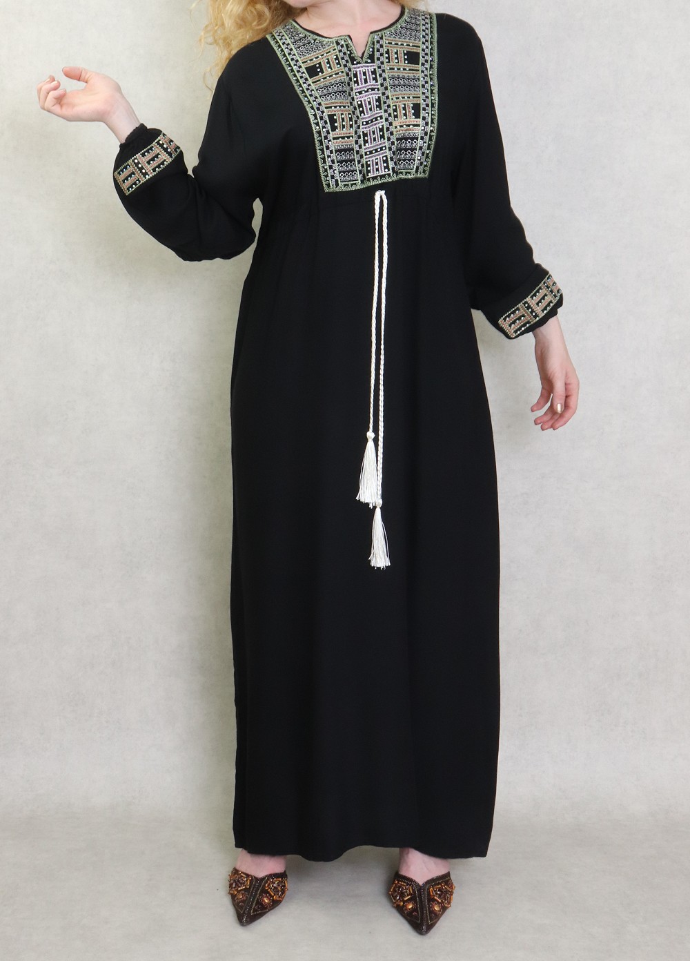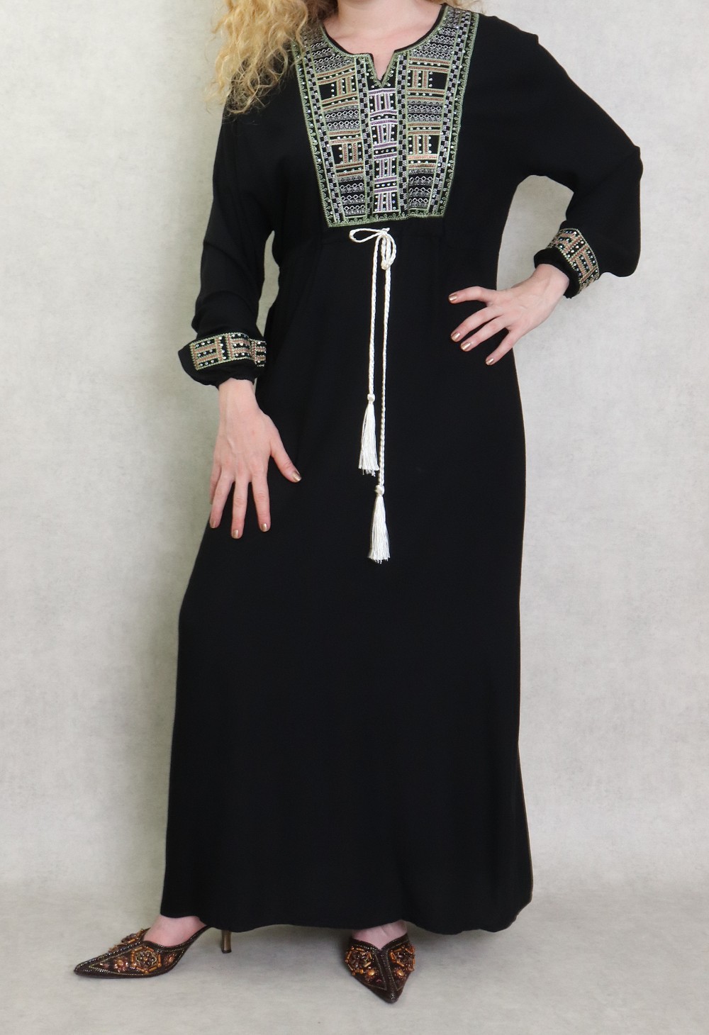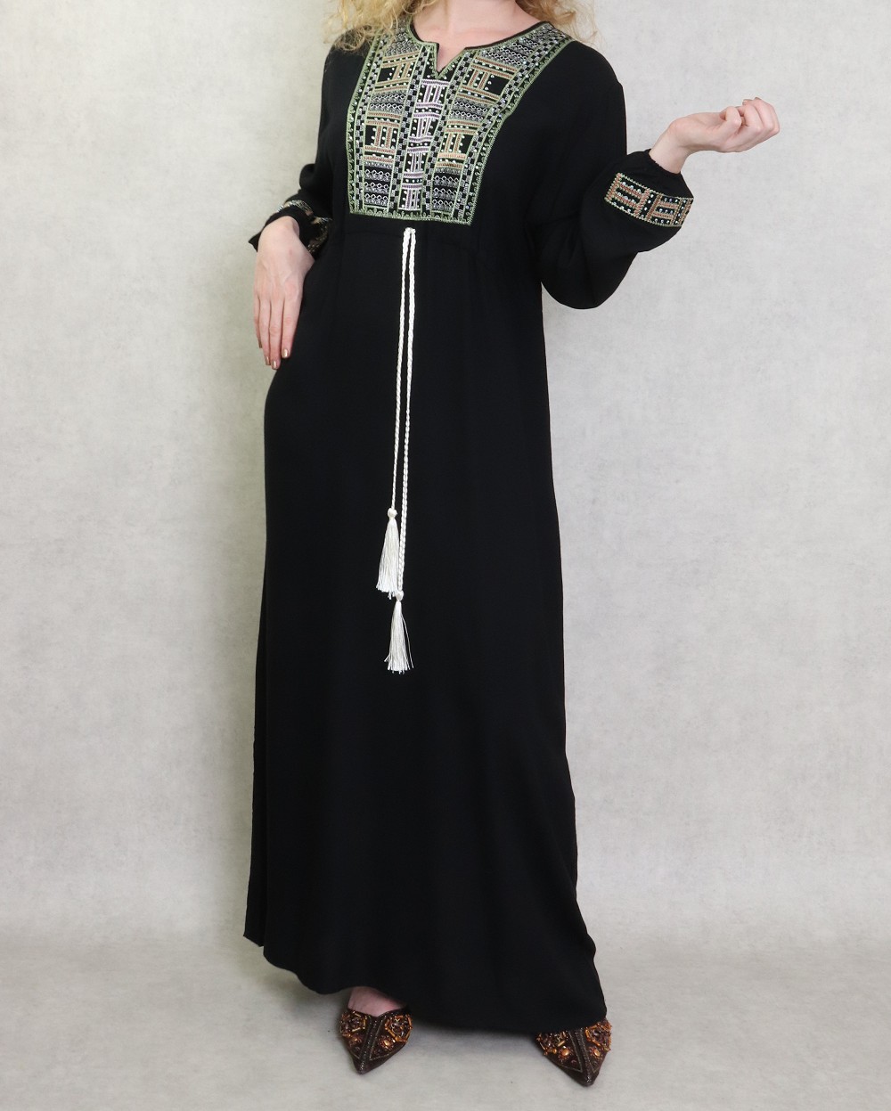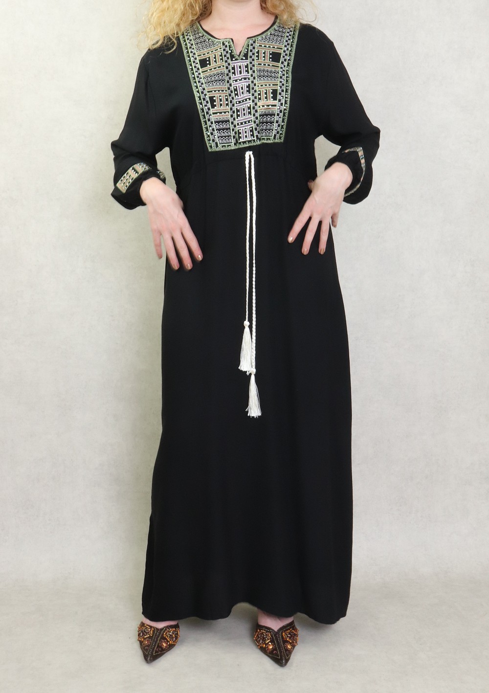 Robe longue noire avec broderies modernes et ceinture - REF. 29186 (39.00 €)