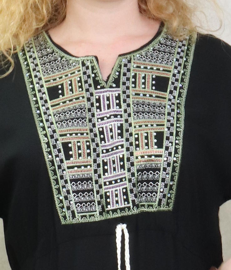 Robe longue arabe style oriental à capuche brodée avec strass pour femme - Couleur Noir - REF. 33677 (29.00 €)