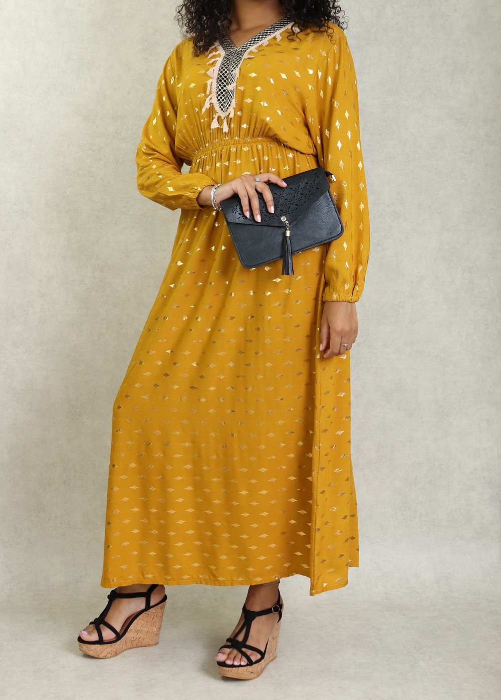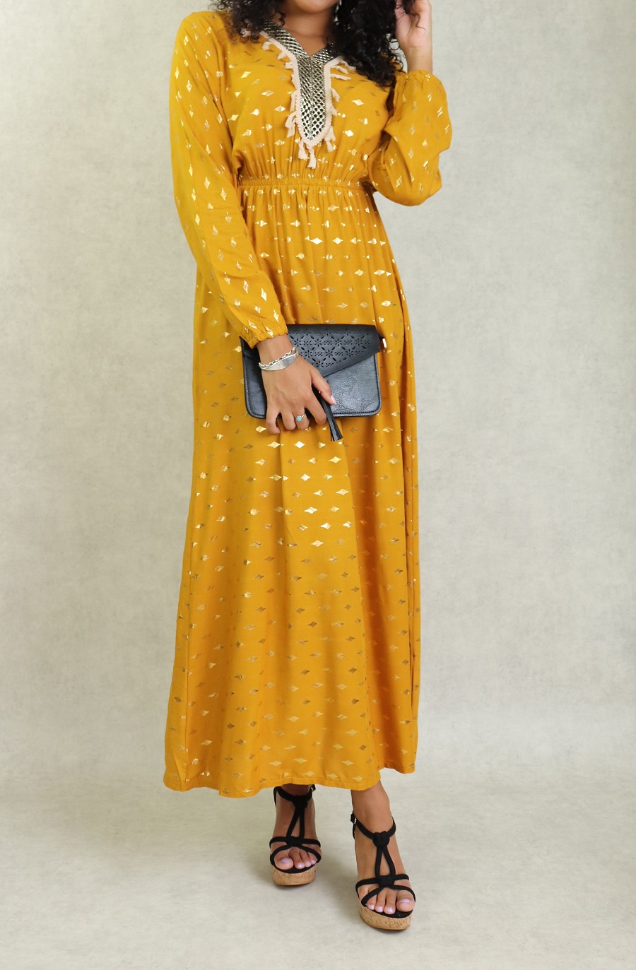 Robe Algérienne brodée pour femme - Couleur jaune moutarde - REF. 36061 (25.00 €)