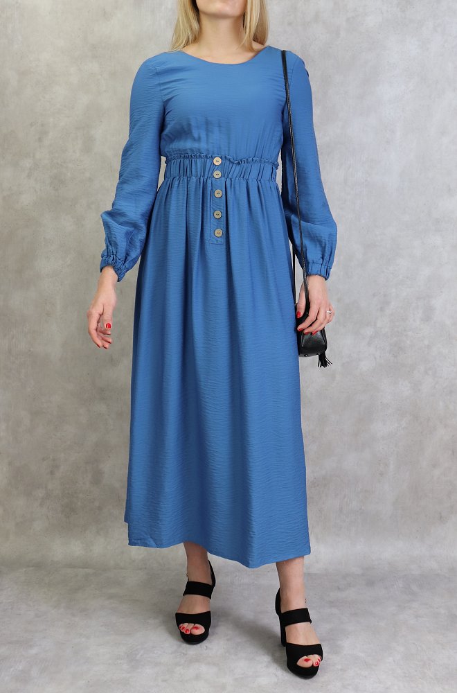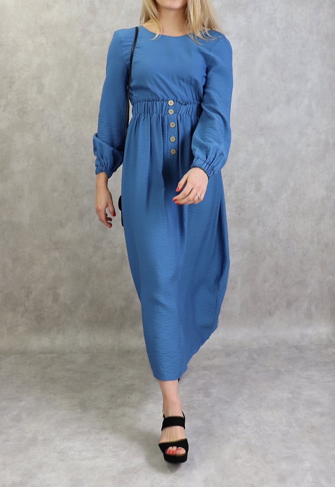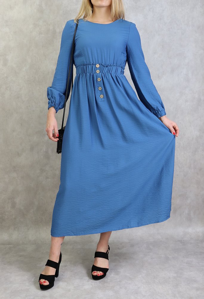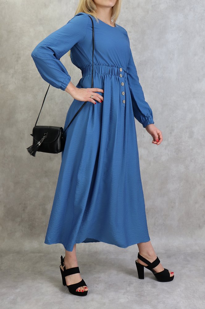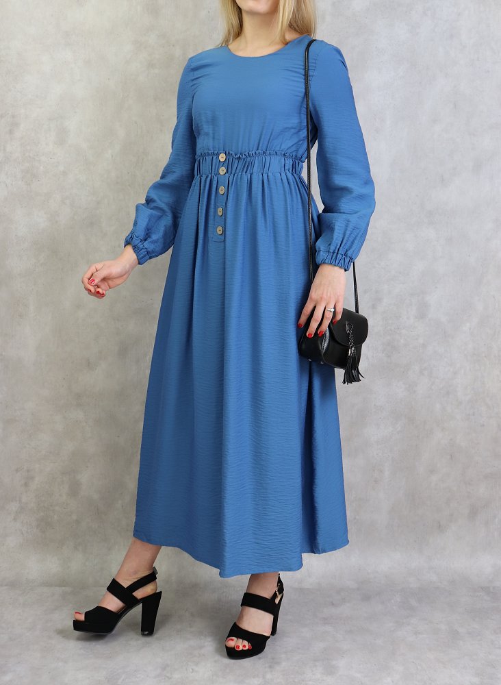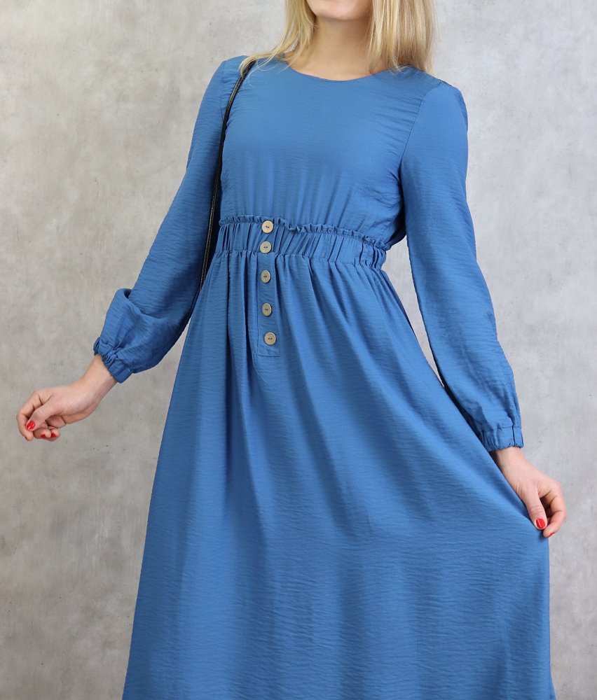 Robe classique et élégante manches plissées - Couleur Bleu acier - REF. 32439 (35.00 €)