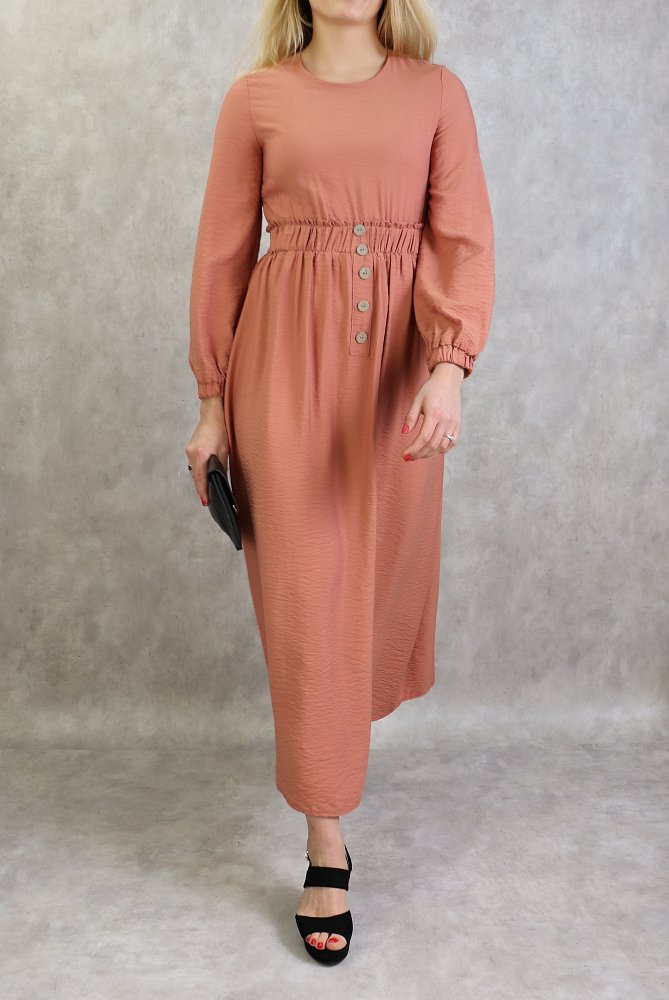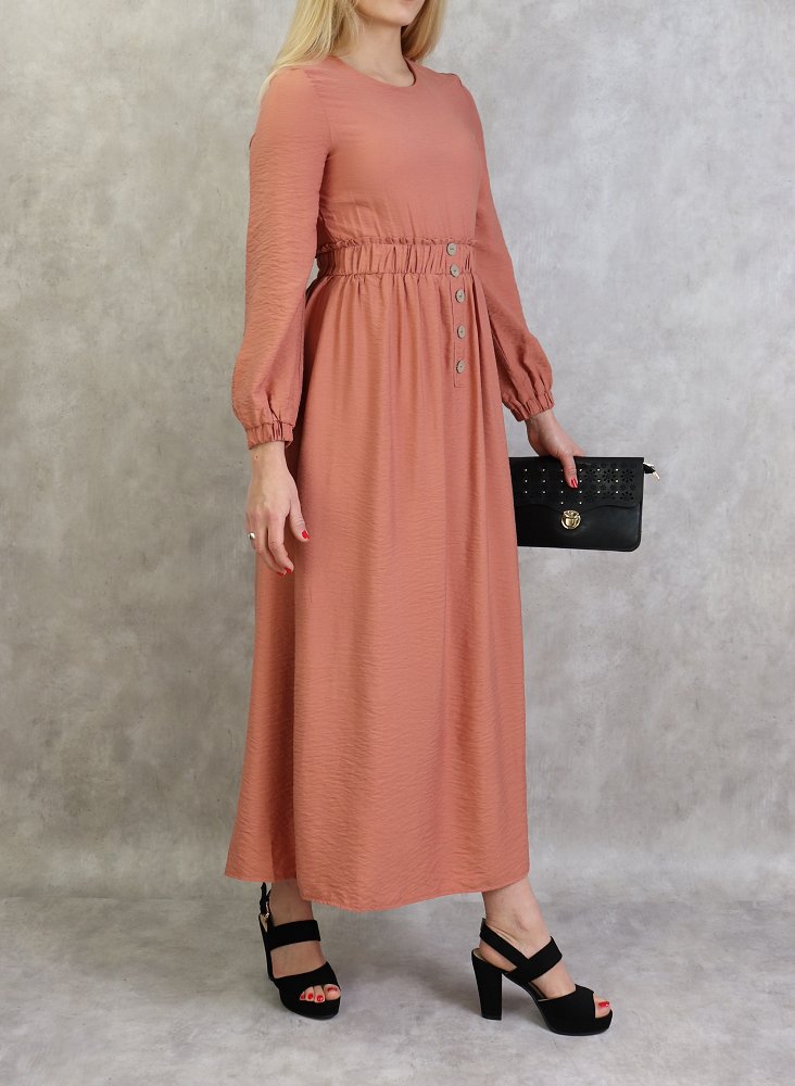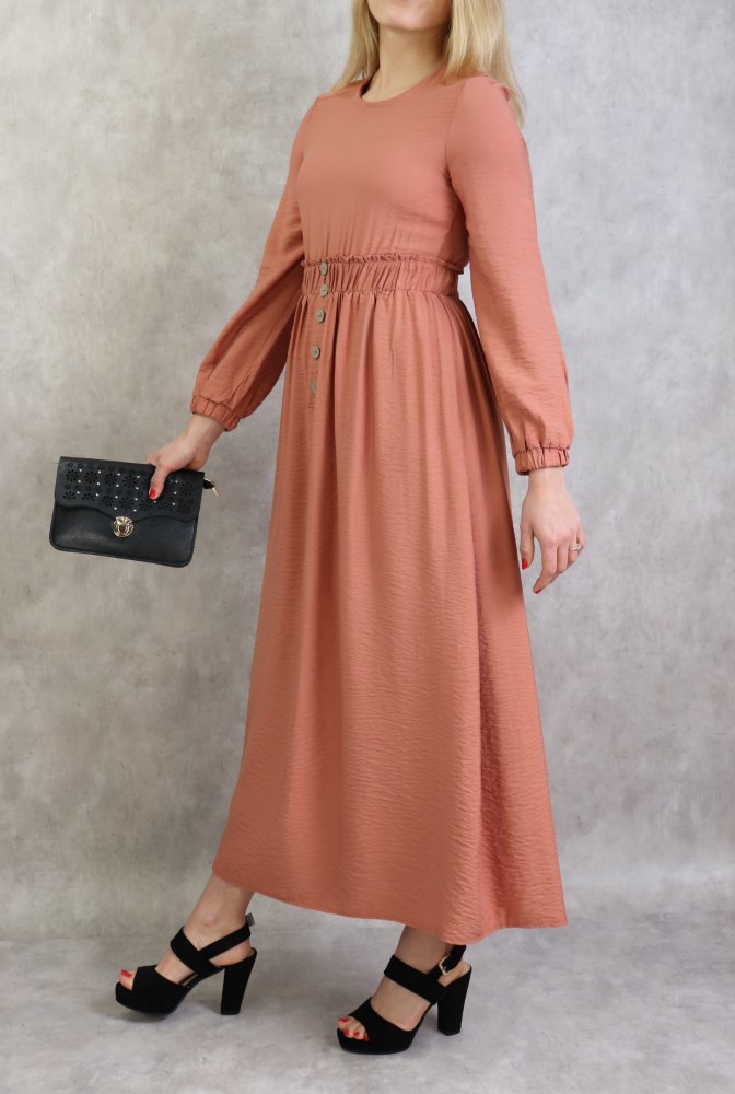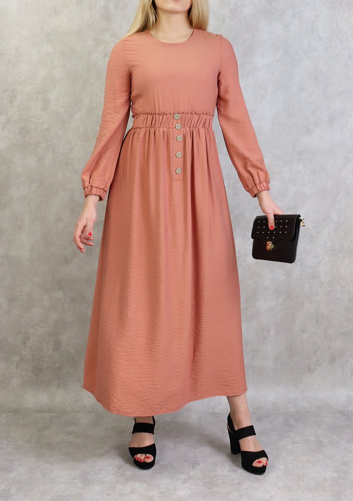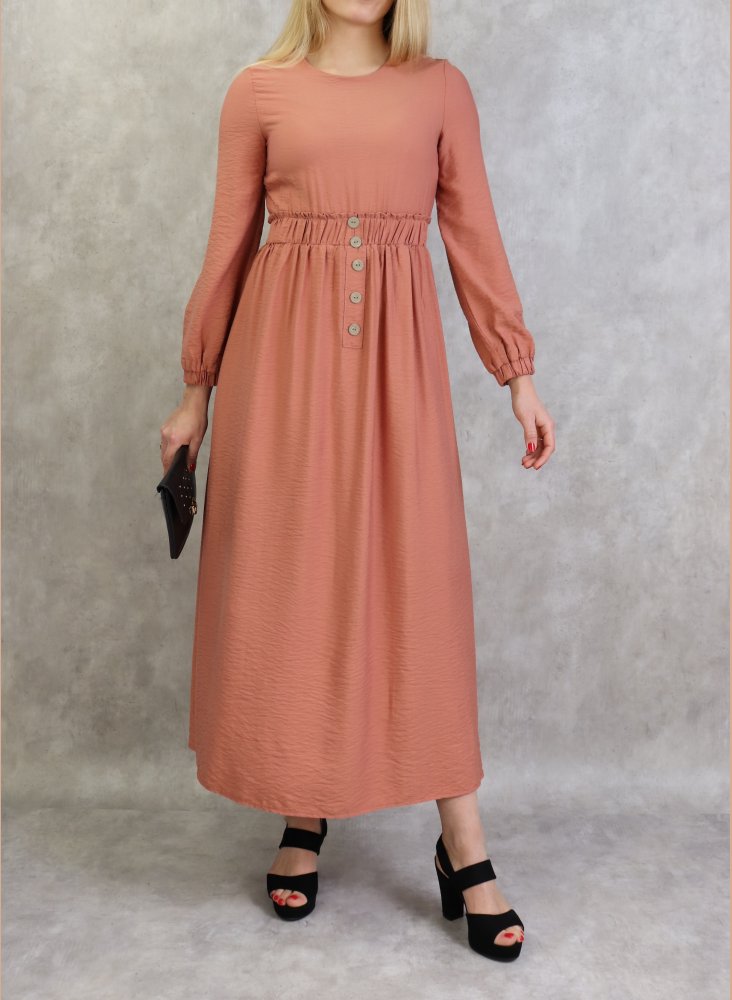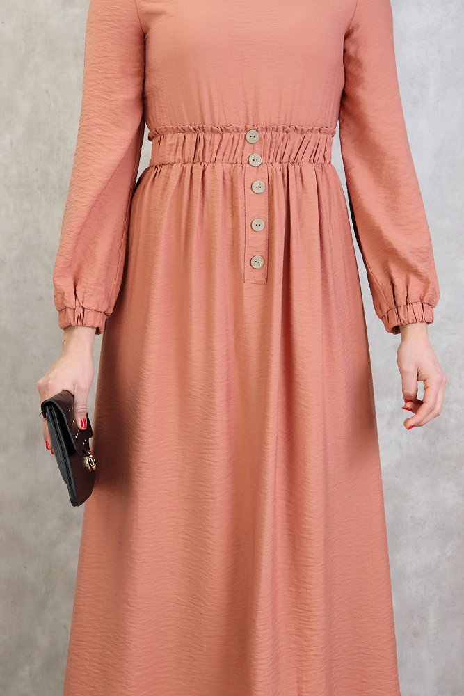 Robe casual décorée de boutons pour femme voilée (Modest Fashion France) - Couleur brique - REF. 33247 (22.00 €)
