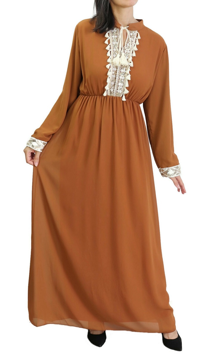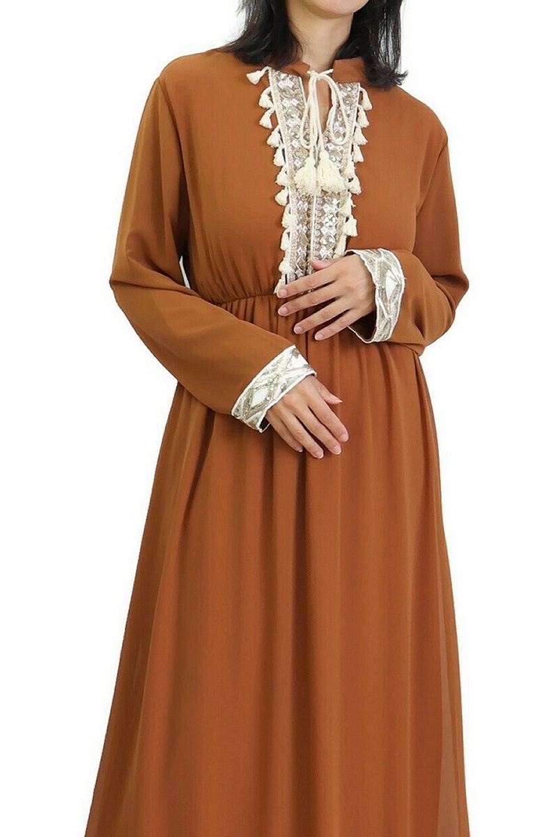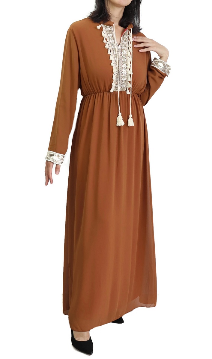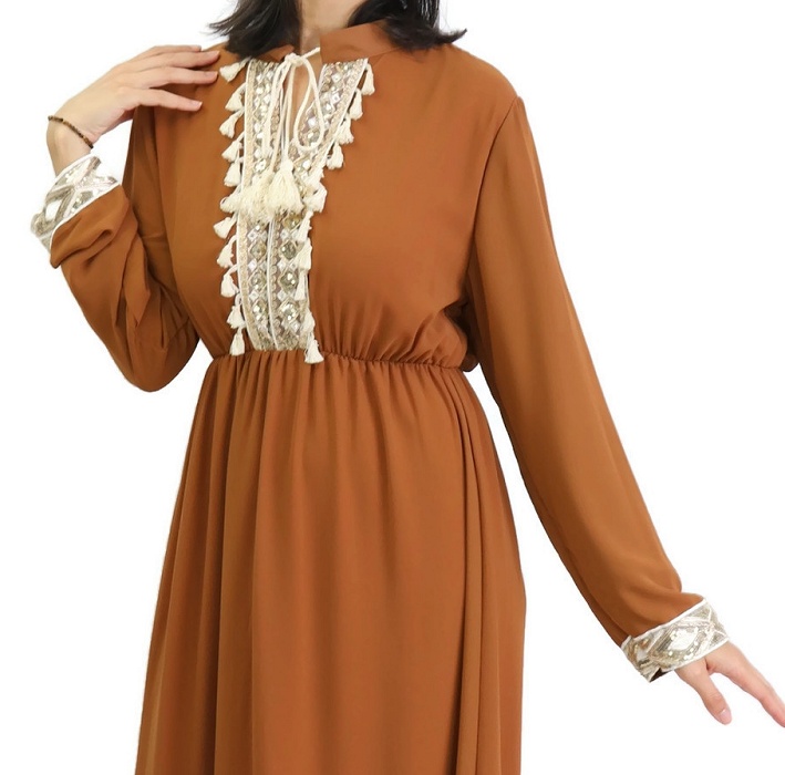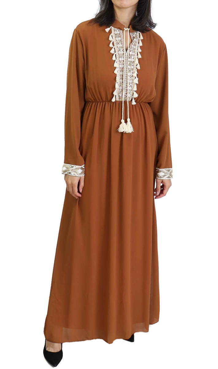 Robe fluide pour femme avec strass et pompons - Couleur Caramel Vetement & Accessoire