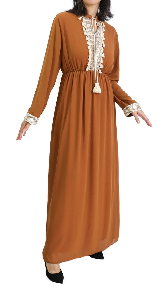 Robe longue casual (Mode islamique pour femme voilée) - Couleur Camel et blanc - REF. 34008 (29.00 €)