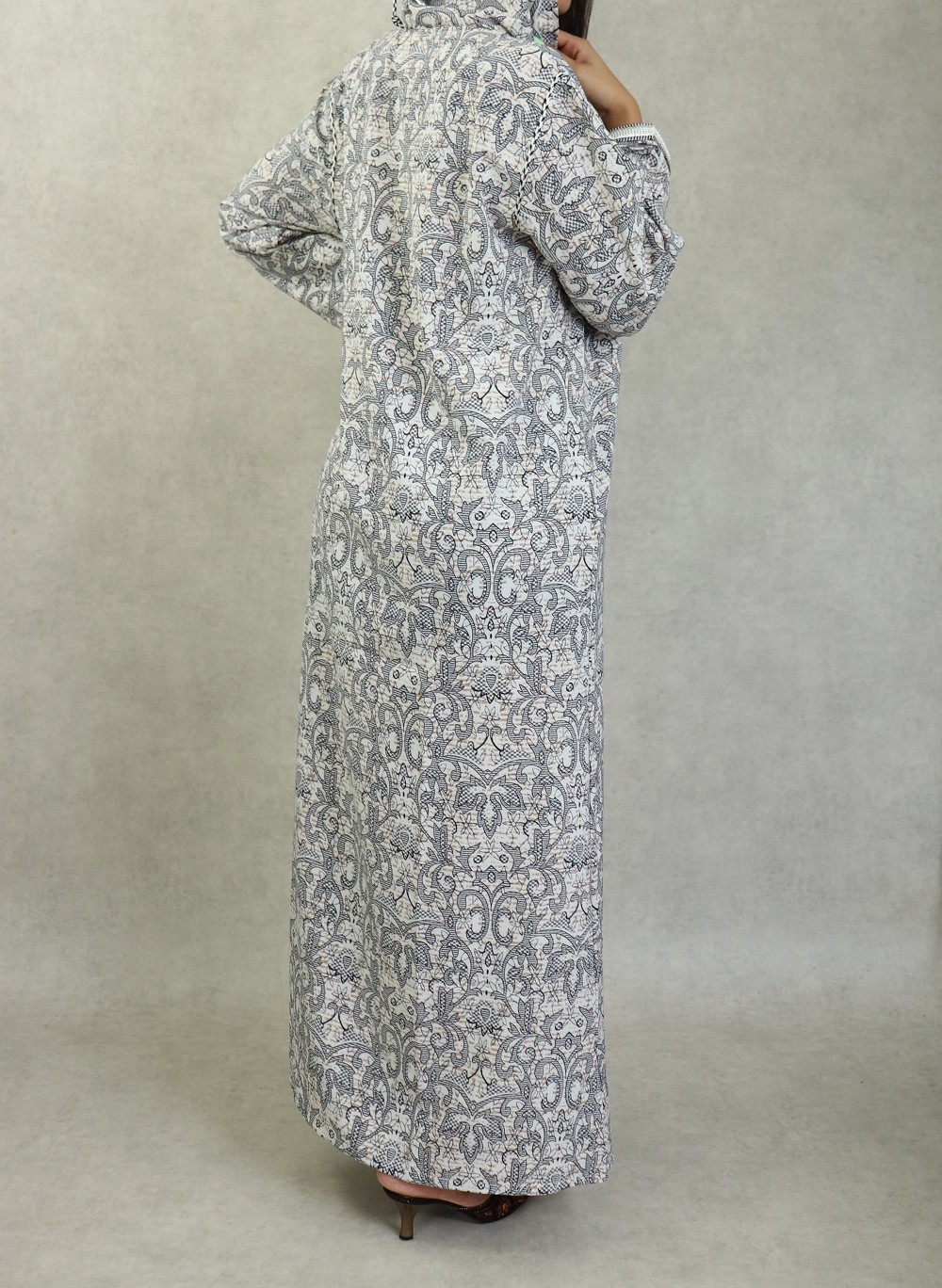 Robe chemise très longue à rayures (Hijab femme voilée chic) - Couleur Crème et gris - REF. 33924 (25.00 €)