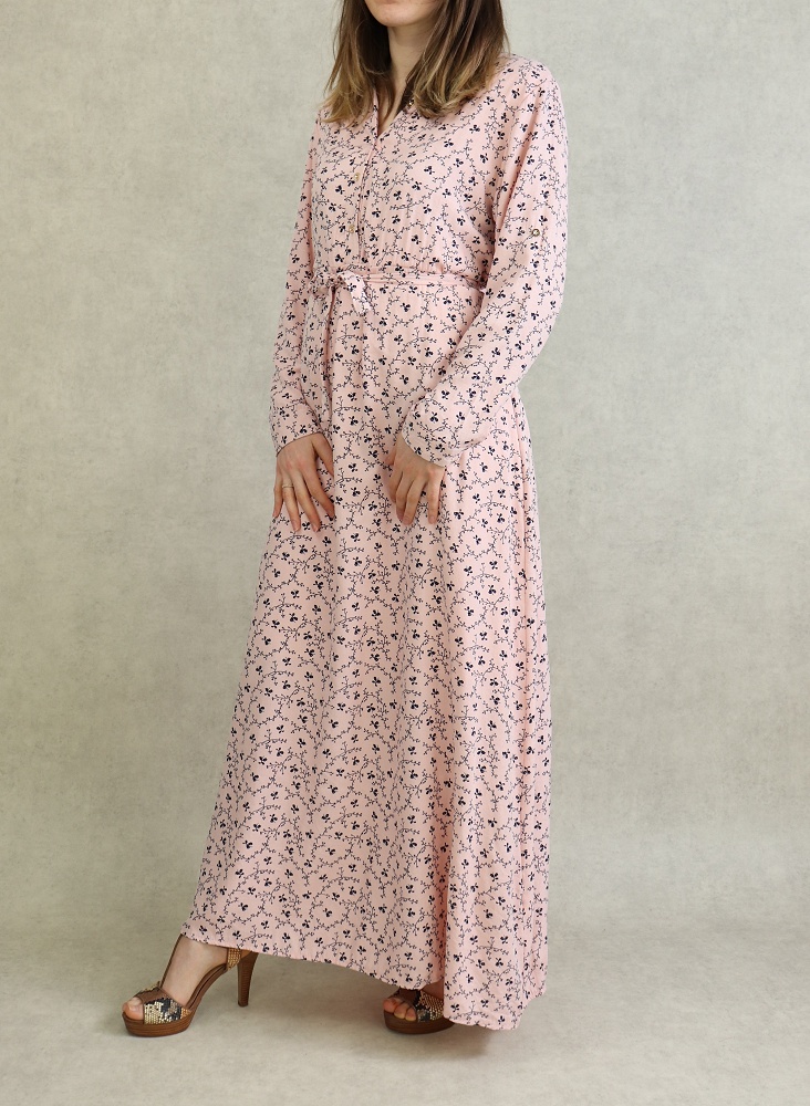 Apportez une touche fleurie à votre penderie avec cette robe rose clair à motif prairie, portez-la avec des sandales pour un look estival réussi.
