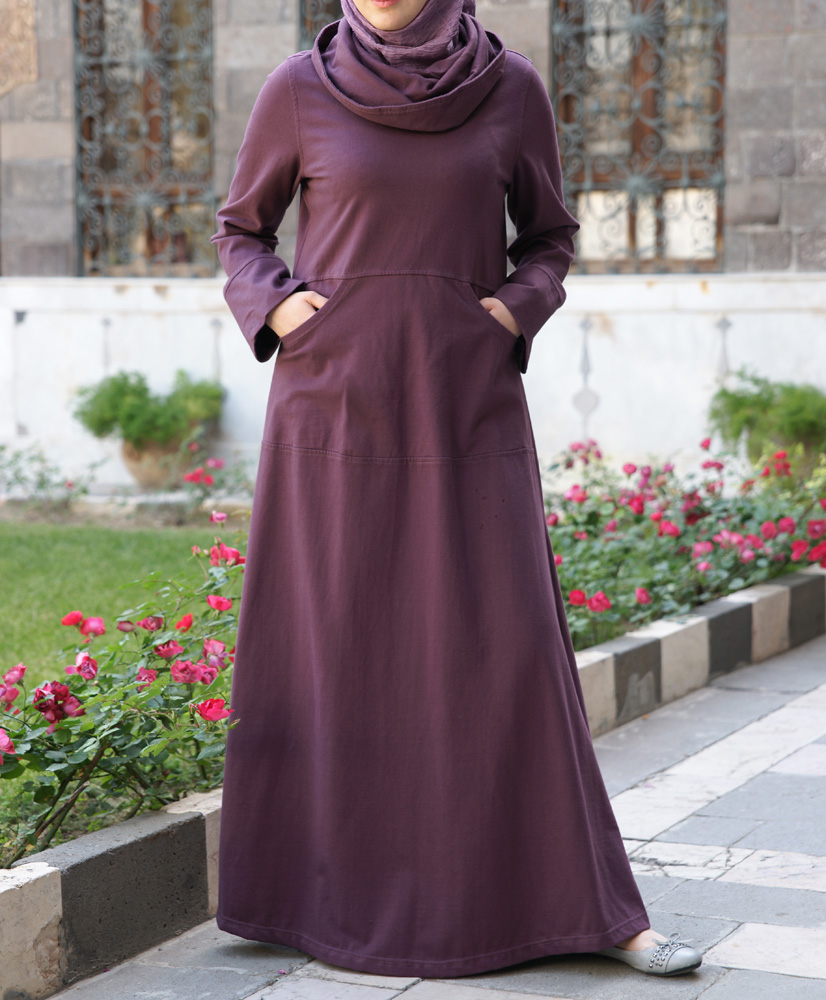 Description: full length; cowl neck; large front pouch pocket. Imported.