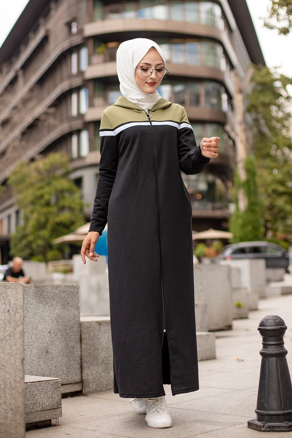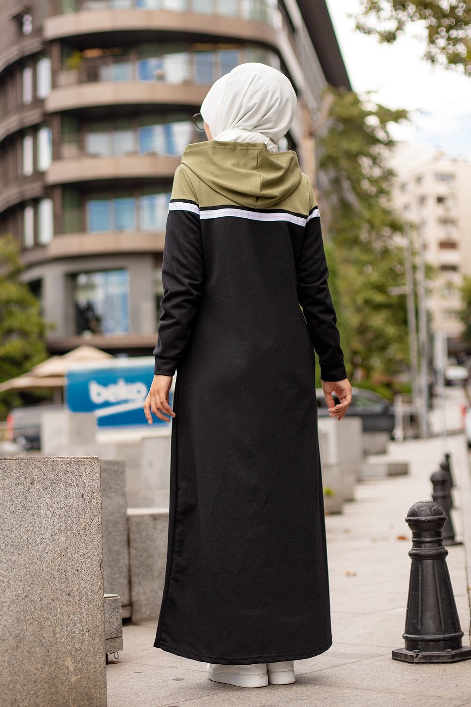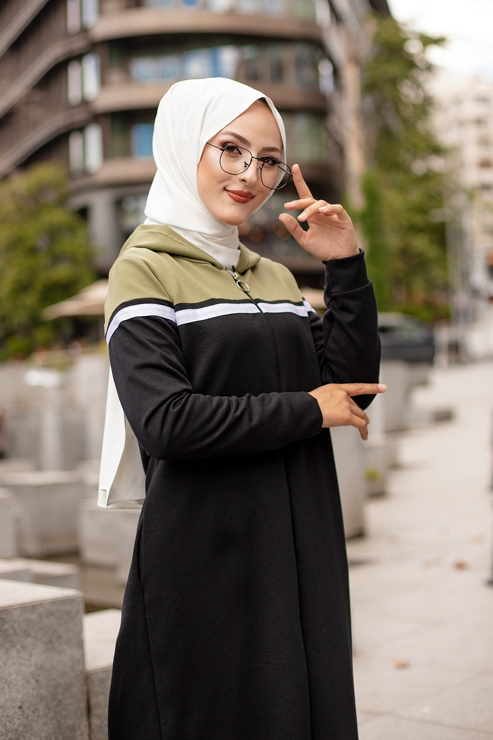 Robe longue à capuche zippée pour femme (Vêtement Hijab décontracté et sport) - Couleur Noir et Kaki Vetement & Accessoire