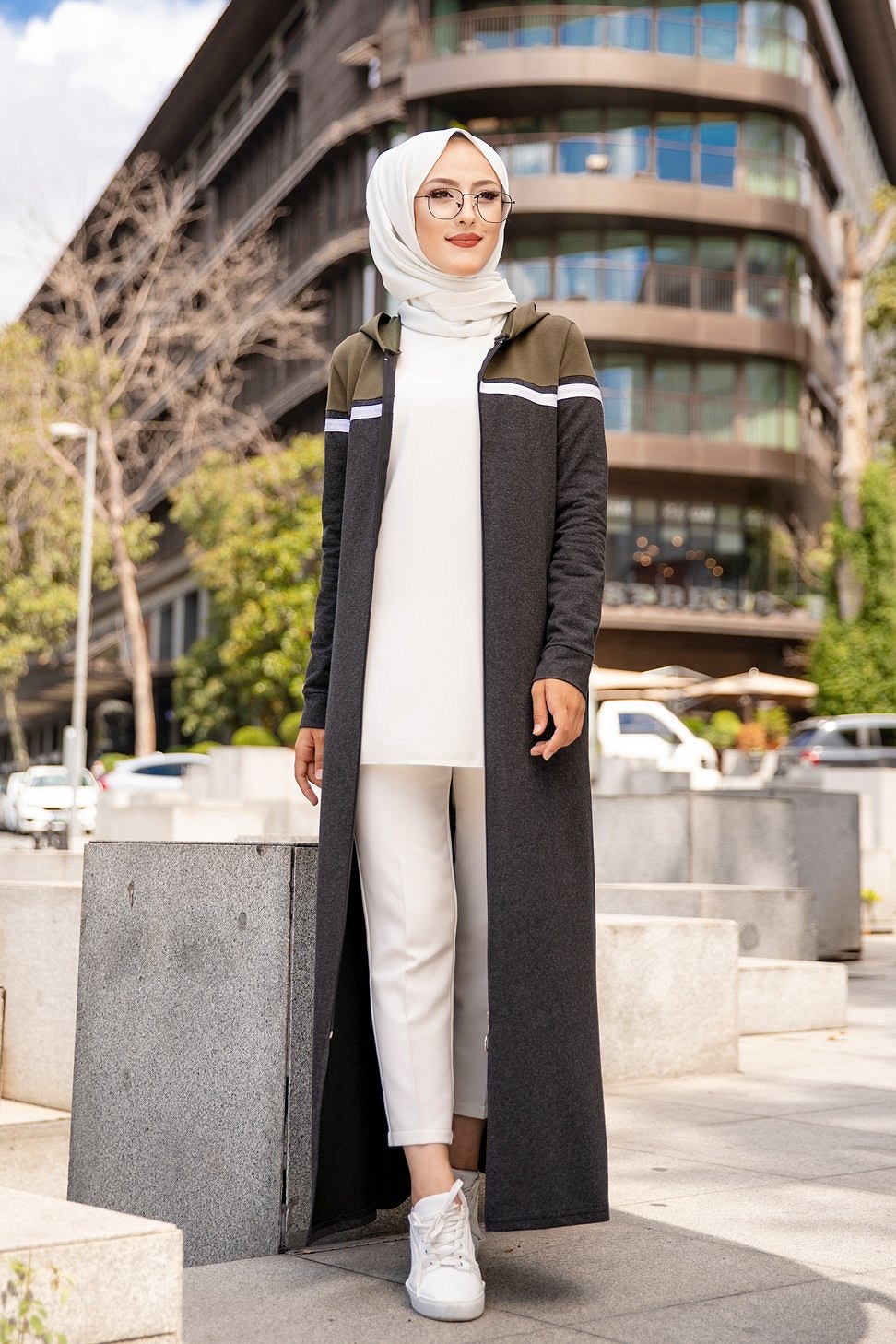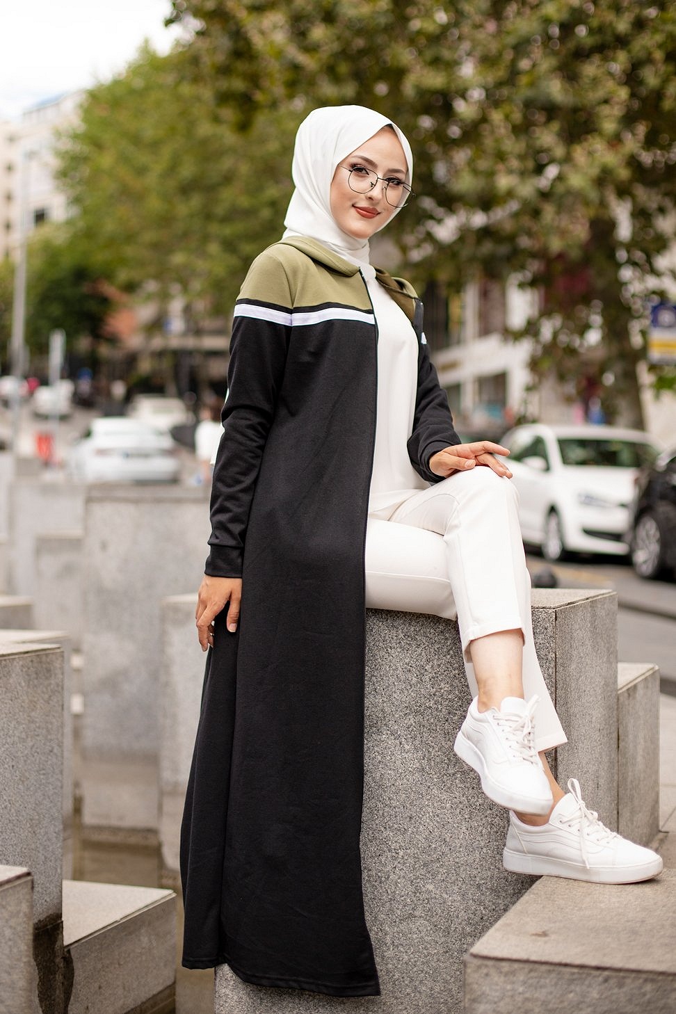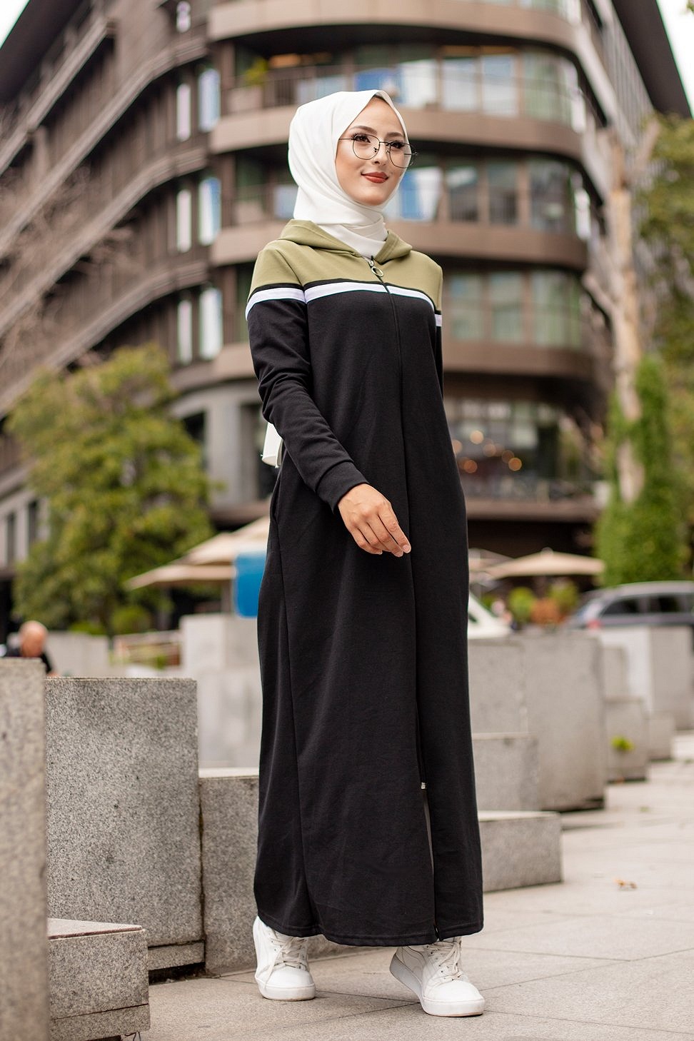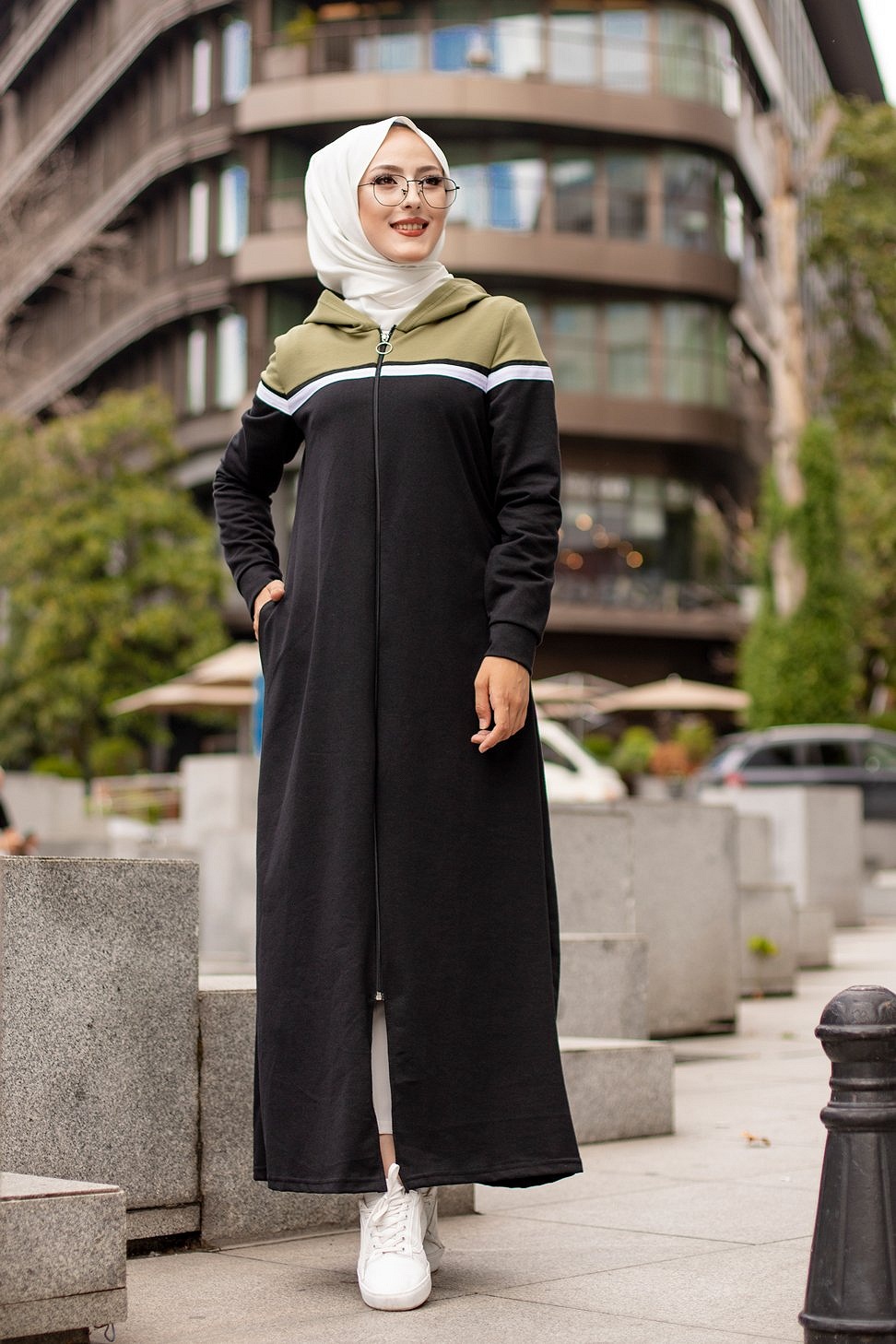 Robe longue à capuche zippée pour femme (Vêtement Hijab décontracté et sport) - Couleur Noir et Kaki Vetement & Accessoire