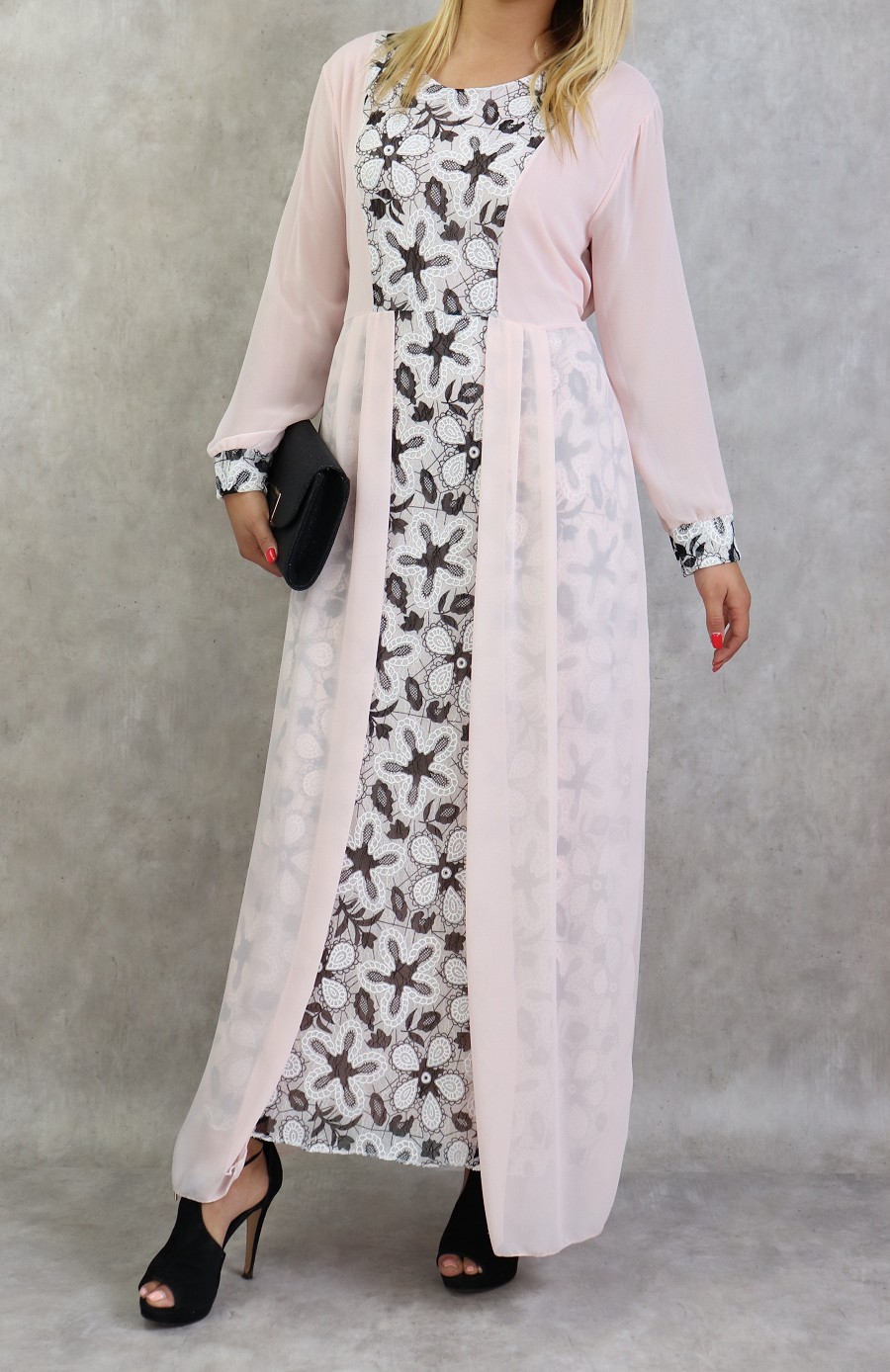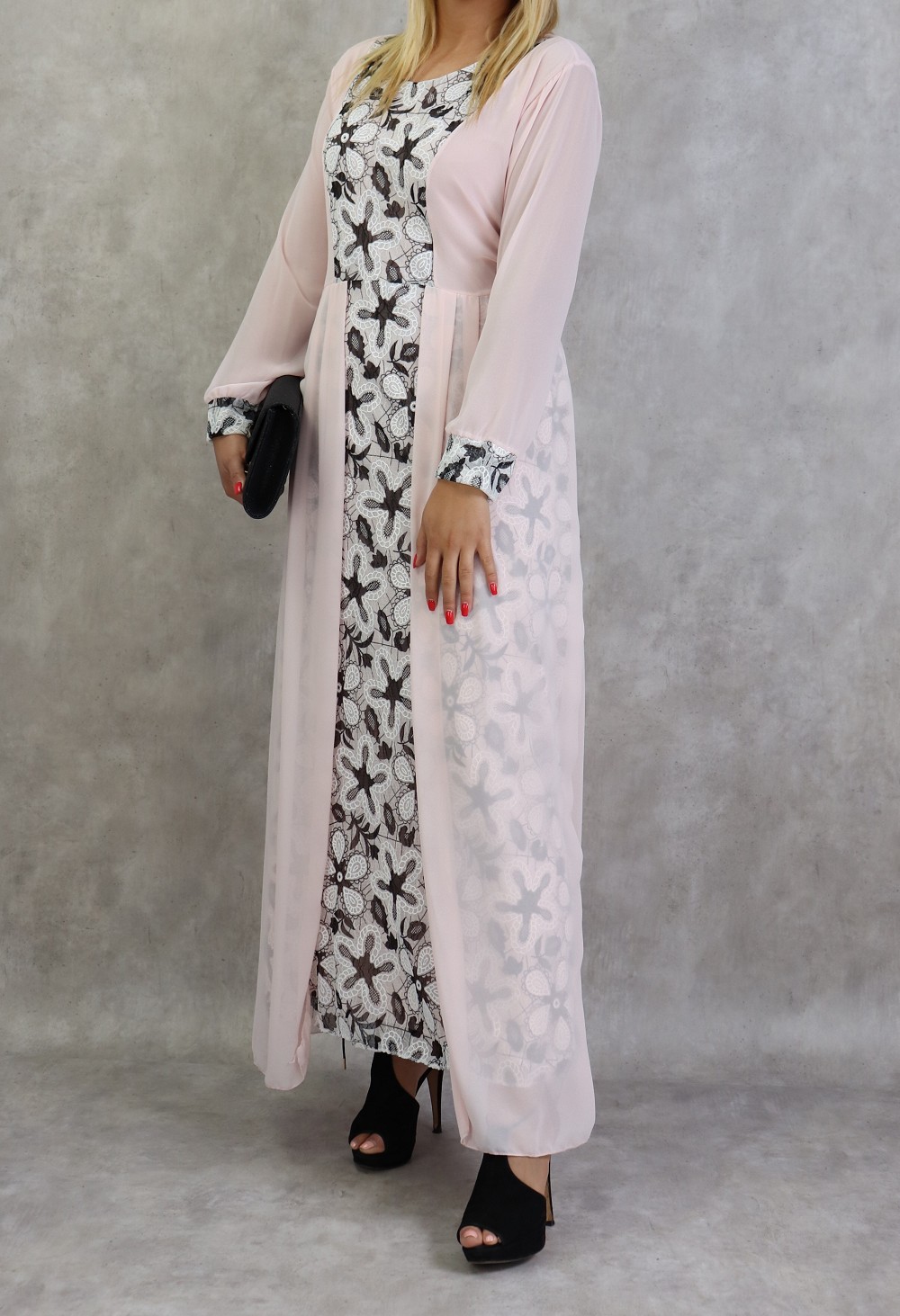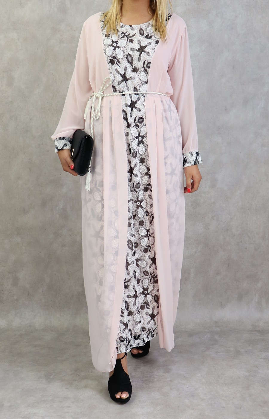 Robe longue à dentelles et mousseline de couleur rose poudré Vetement & Accessoire