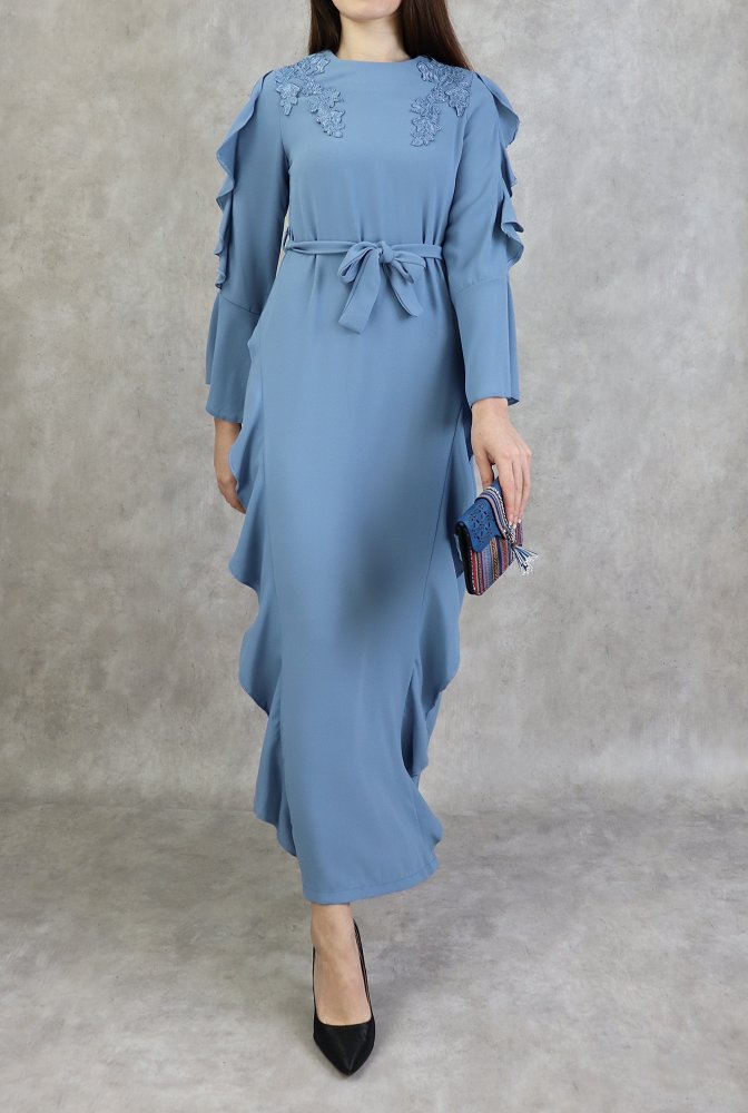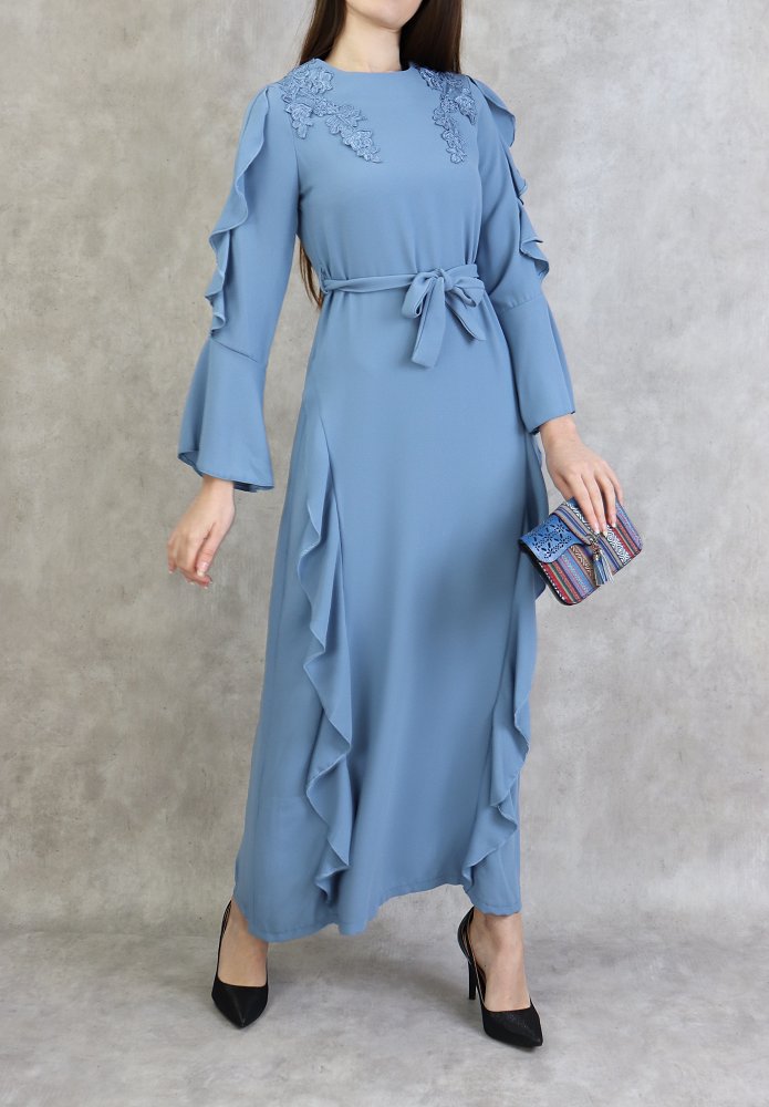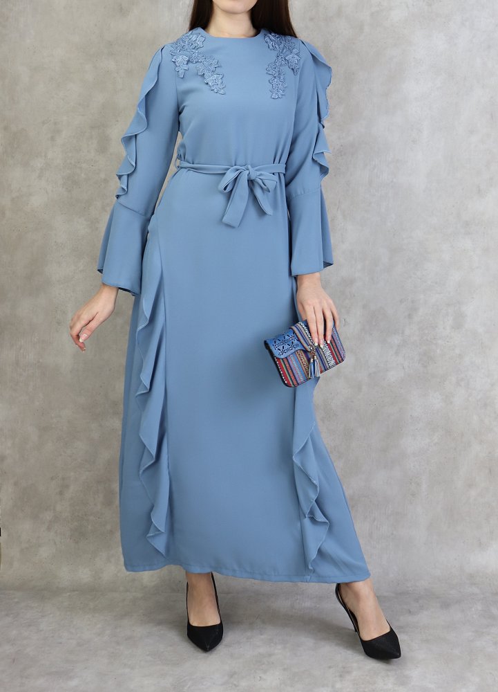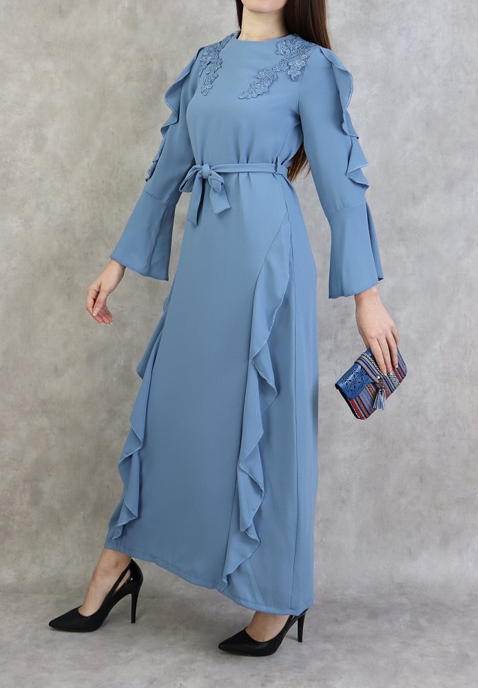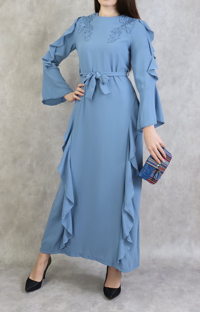 Robe longue à froufrous - Couleur Bleu Gris Vetement & Accessoire