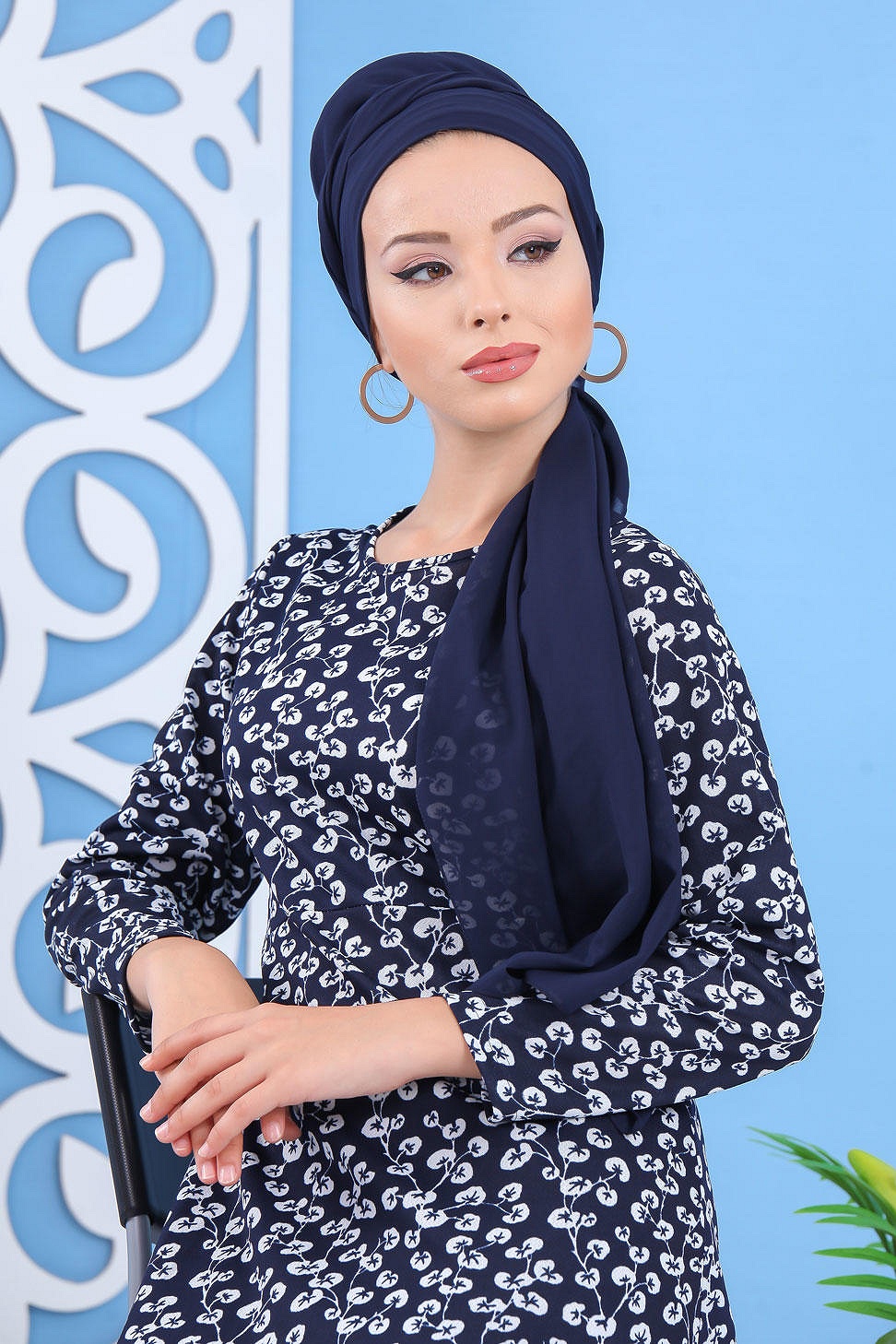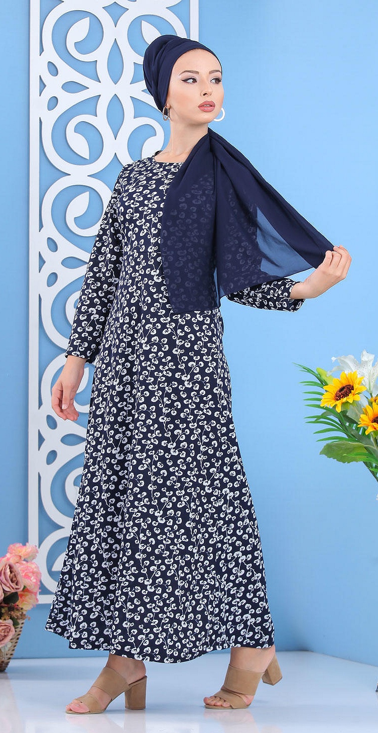 Robe décontractée à capuche de type sportwear - Vêtement Hidjab pour femme musulmane - Couleur noir, blanc et bleu indigo - REF. 32926 (29.90 €)