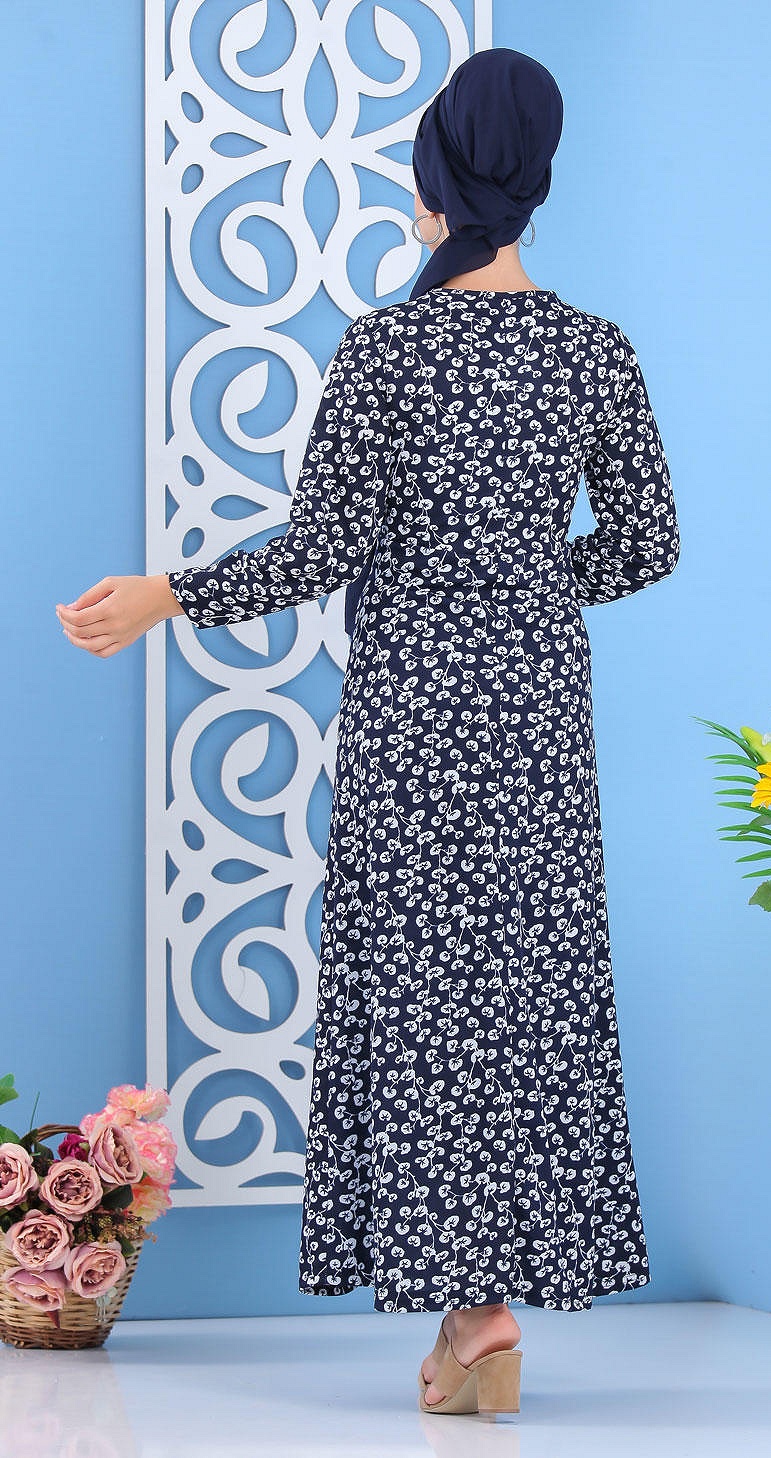 Robe longue à imprimés nénuphar pour femme - Couleur bleu marine Vetement & Accessoire