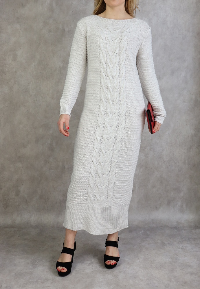 Robe longue à maille de couleur blanc cassé Vetement & Accessoire