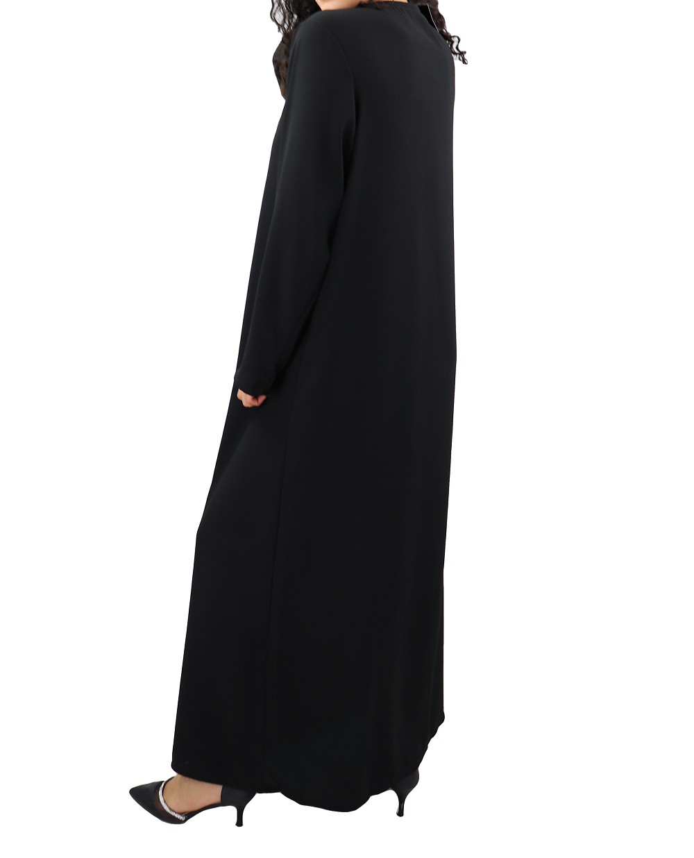 Robe longue (Abaya) noire avec strass et diamants noirs et son écharpe assortie - REF. 25278 (40.00 €)
