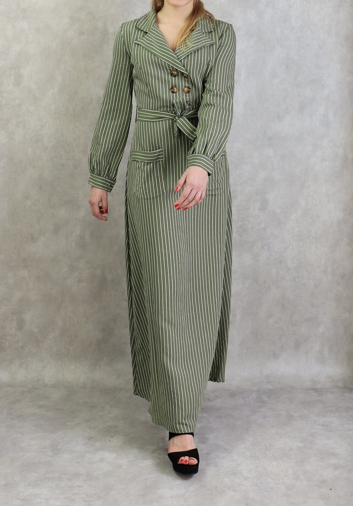 Robe longue à rayure de couleur kaki Vetement & Accessoire