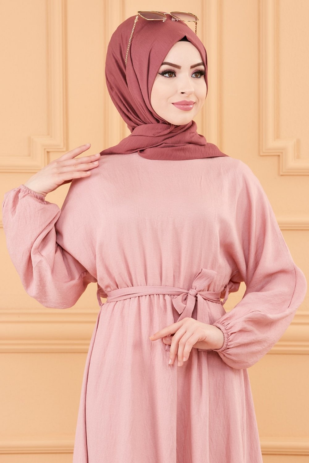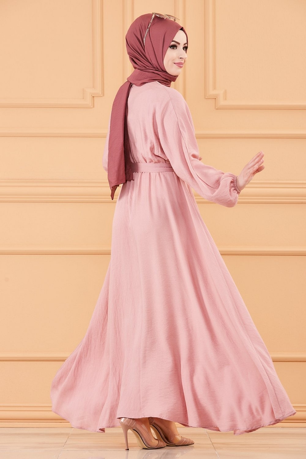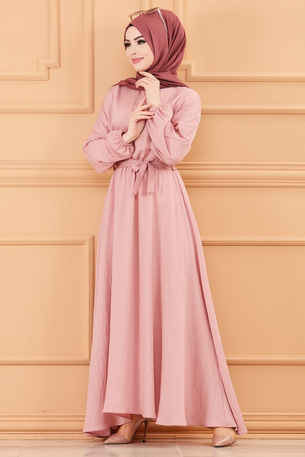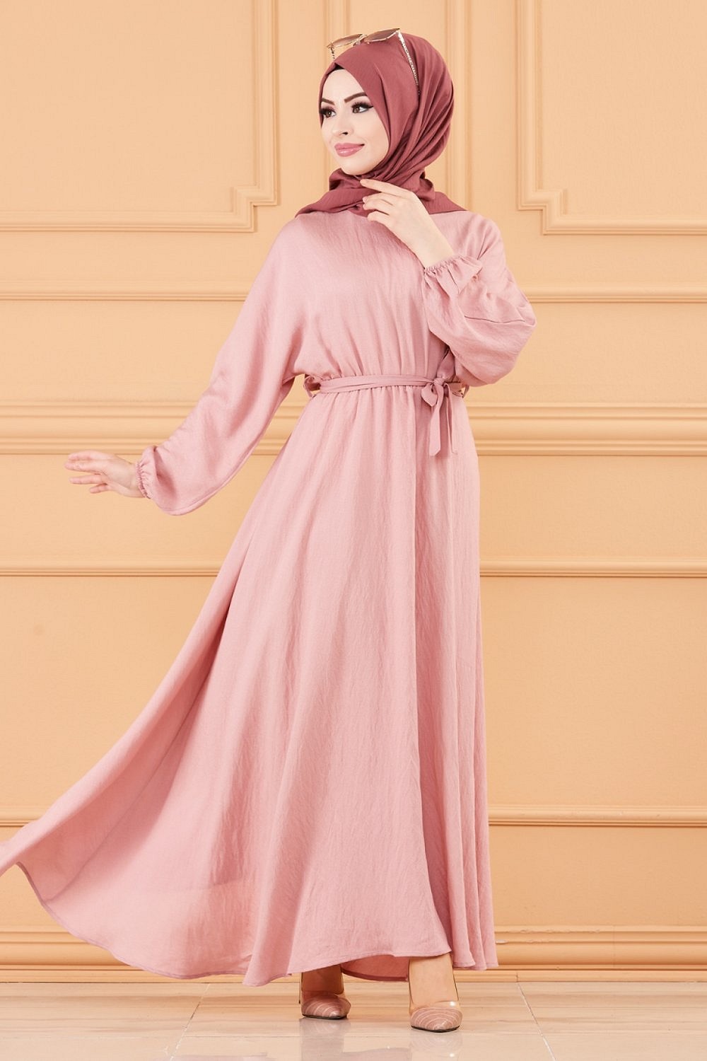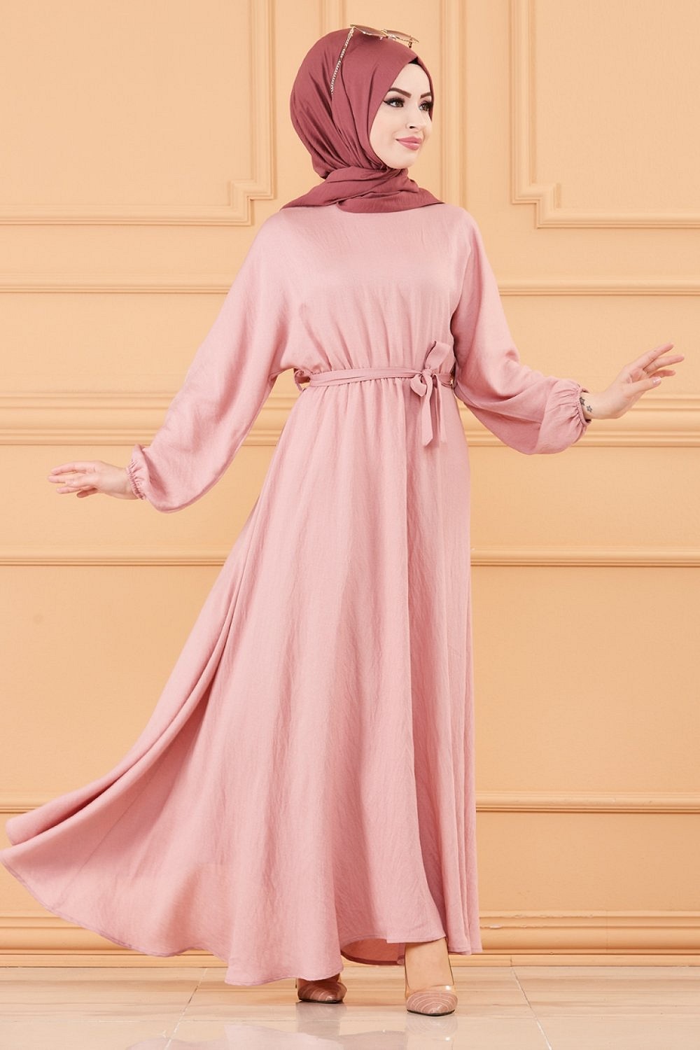 Robe longue ample et évasée en coton (Tenue pour femme voilée) - Couleur rose Vetement & Accessoire