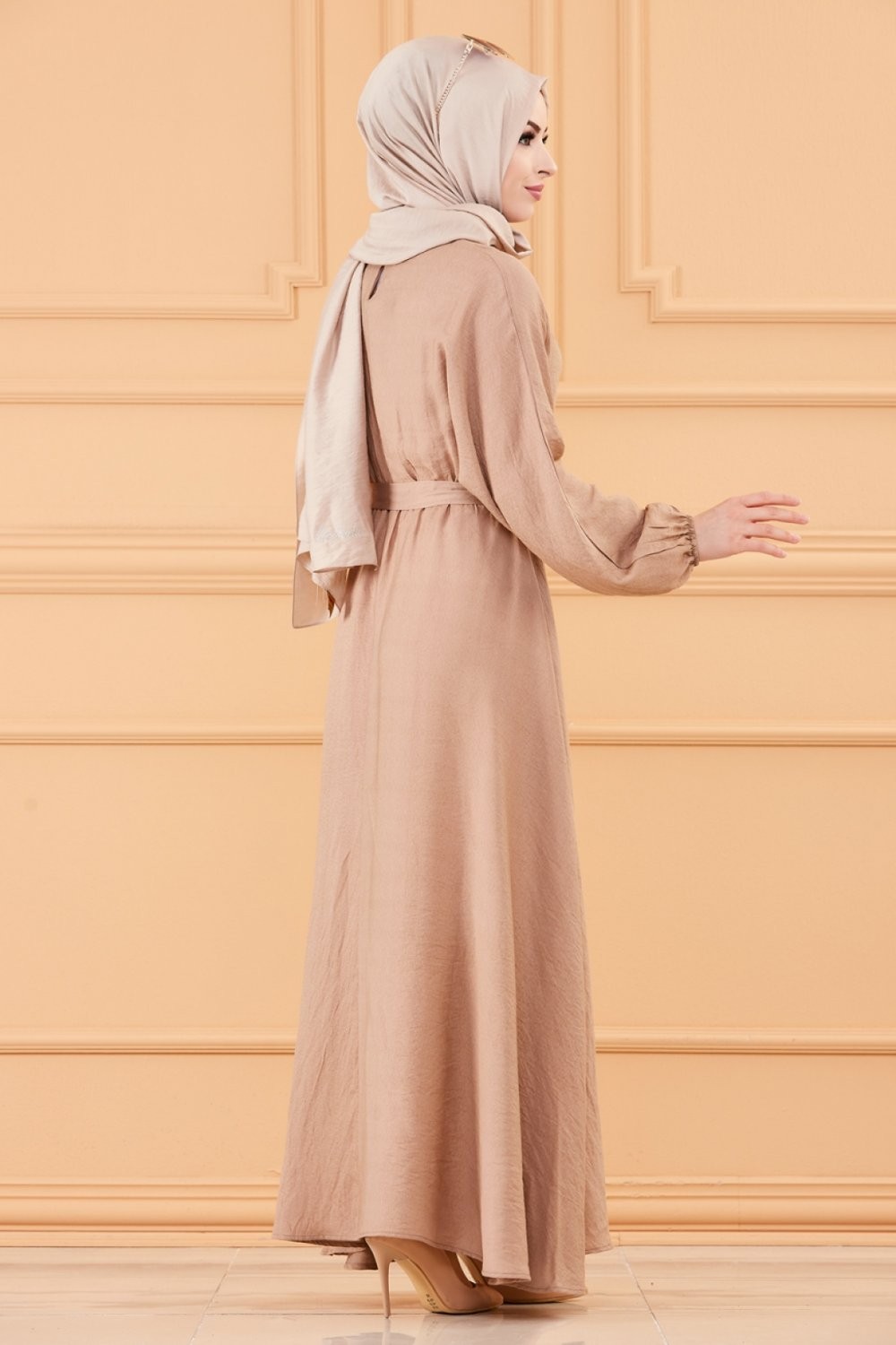 Robe longue ample et évasée en coton (Vêtement pour femme voilée) - Couleur vison Vetement & Accessoire
