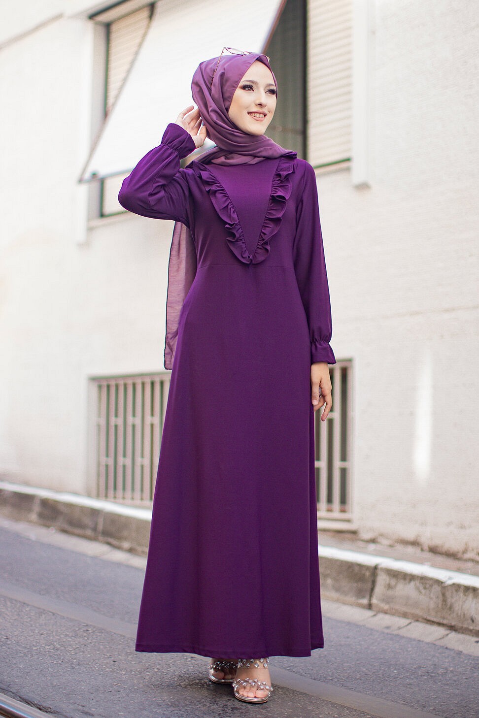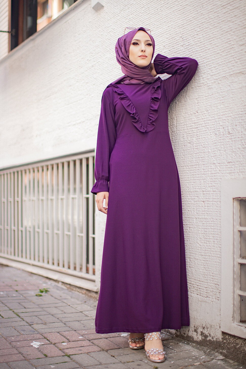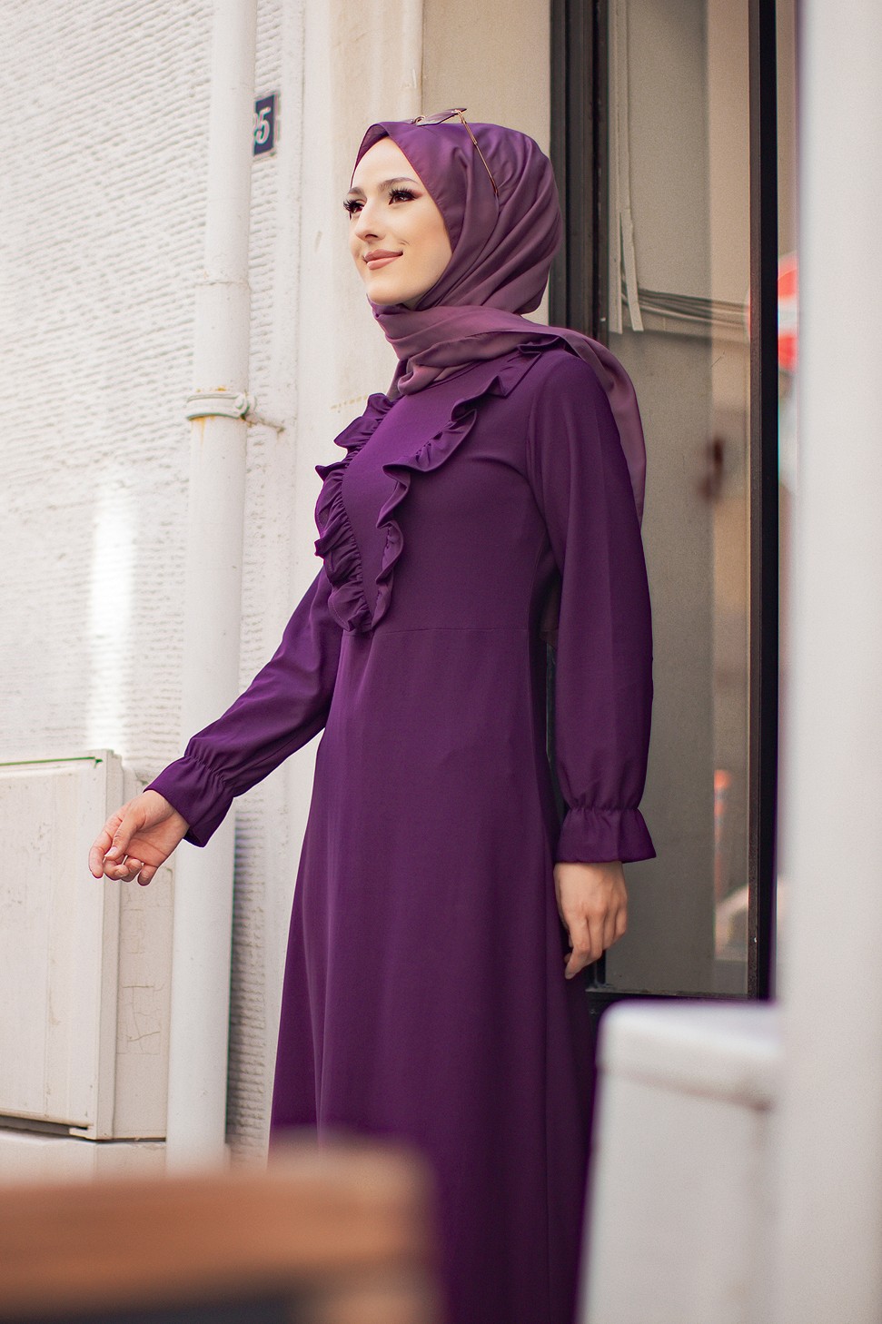 Robe longue bordee dun volant pour femme (Vetement style habille pour hijab) - Couleur violet