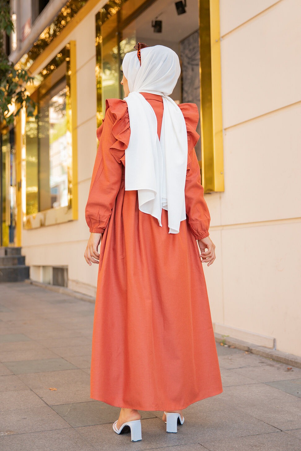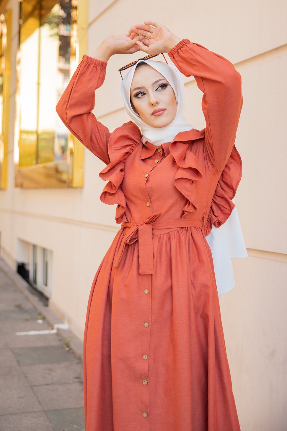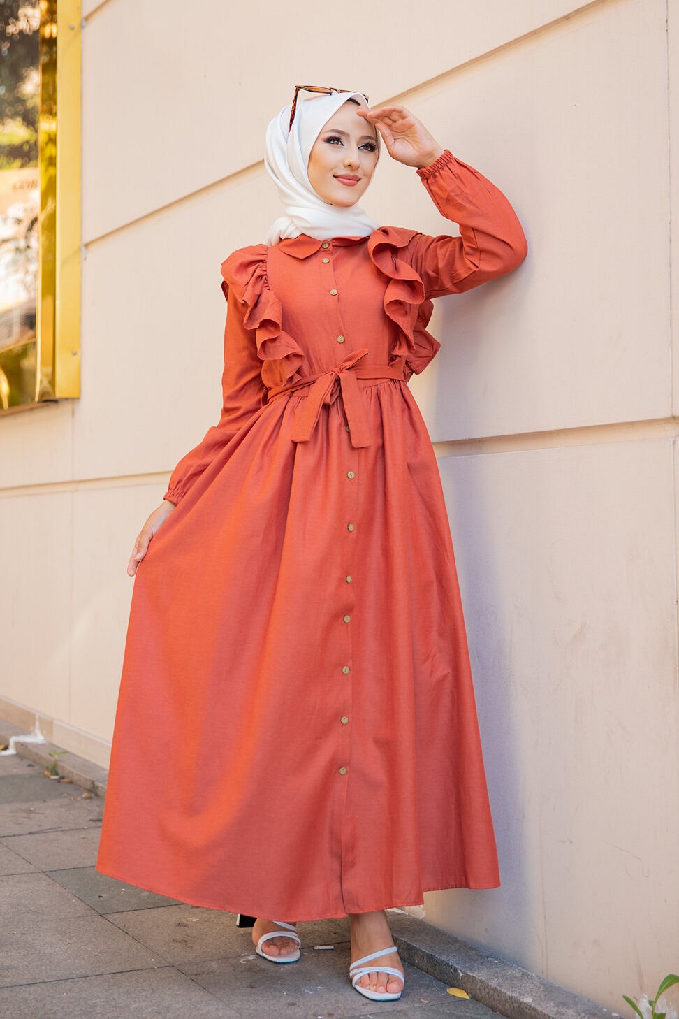 Robe longue boutonnée à froufrou (Vetement pour femme voilée) - Couleur Rouille Vetement & Accessoire