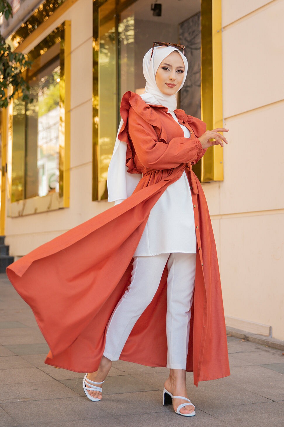 Robe longue boutonnee a froufrou (Vetement pour femme voilee) - Couleur Rouille