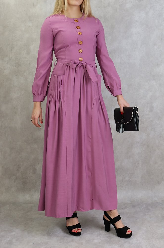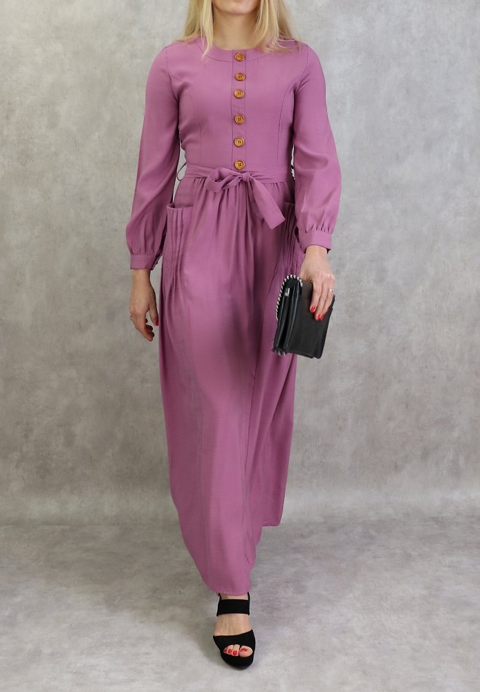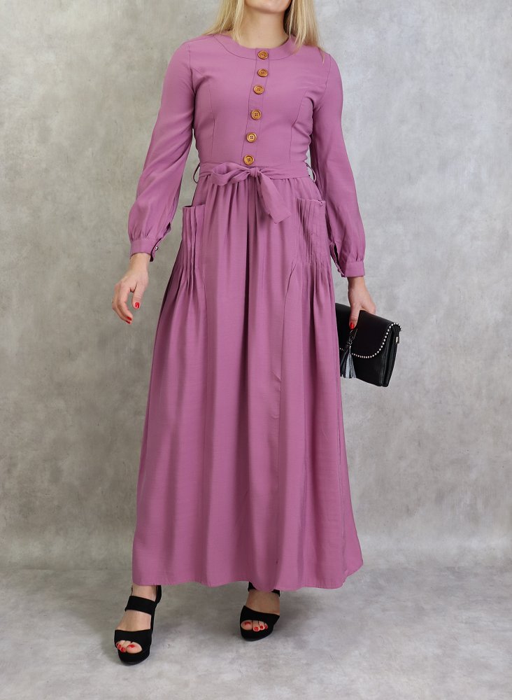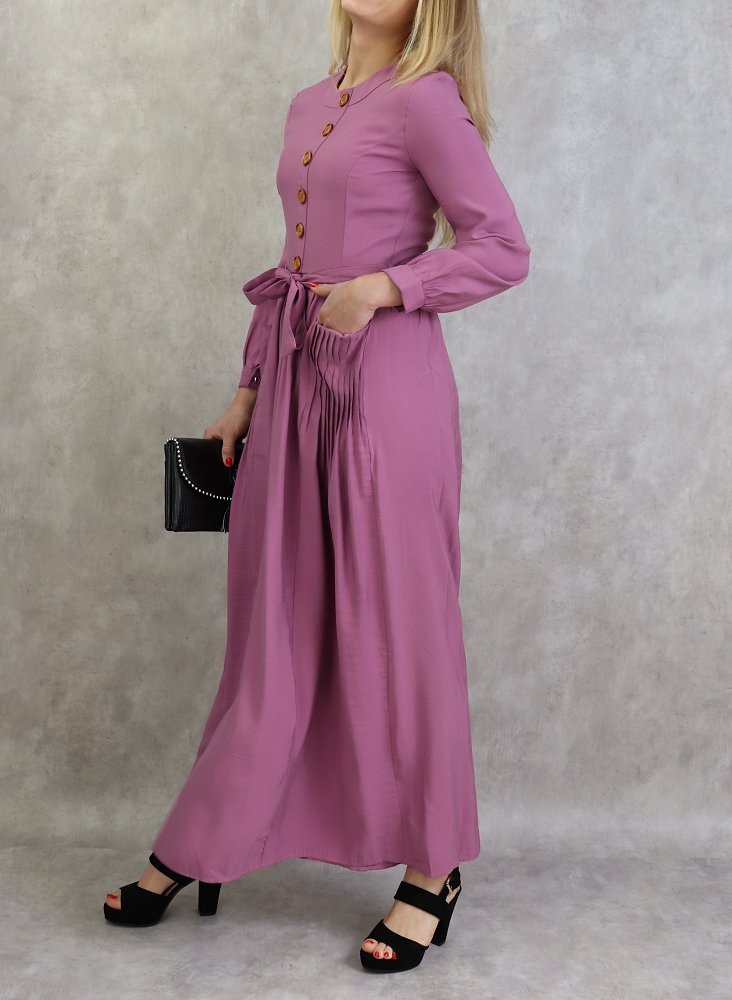 Robe longue boutonnée esprit casual pour femme - Couleur Mauve Vetement & Accessoire