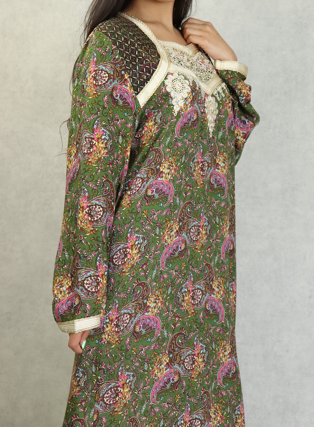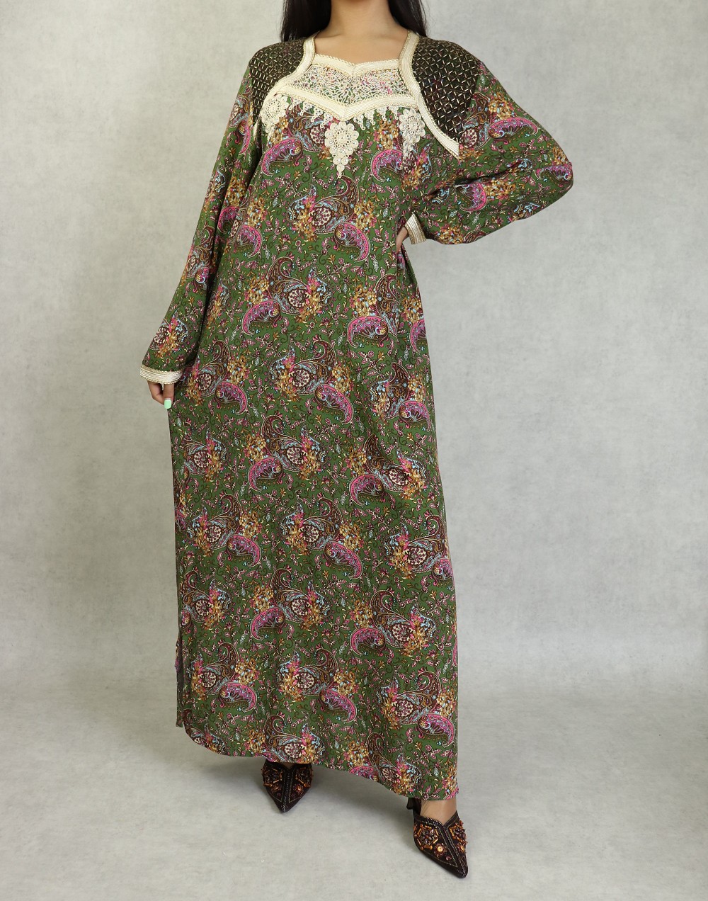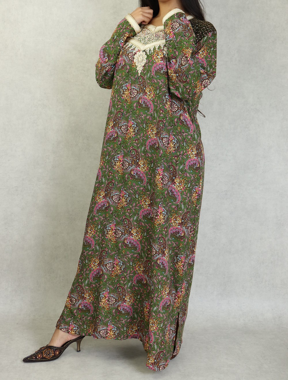Robe longue brodée à motif cachemire pour femme - Couleur Vert kaki Vetement & Accessoire