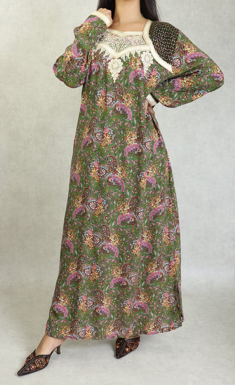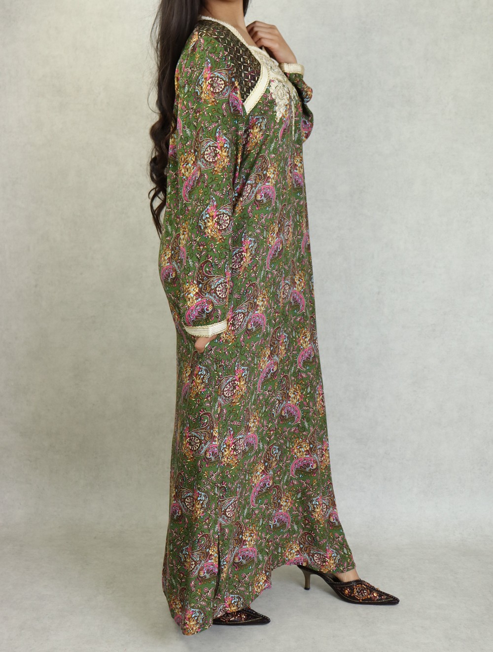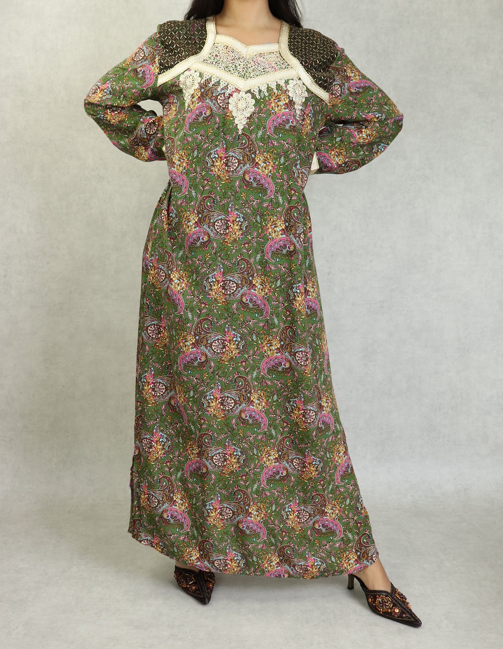 Robe longue brodée à motif cachemire pour femme - Couleur Vert kaki Vetement & Accessoire