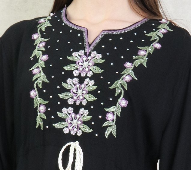 Robe Abaya Dubaï noire de qualité strass et dentelle noires - REF. 38197 (45.00 €)