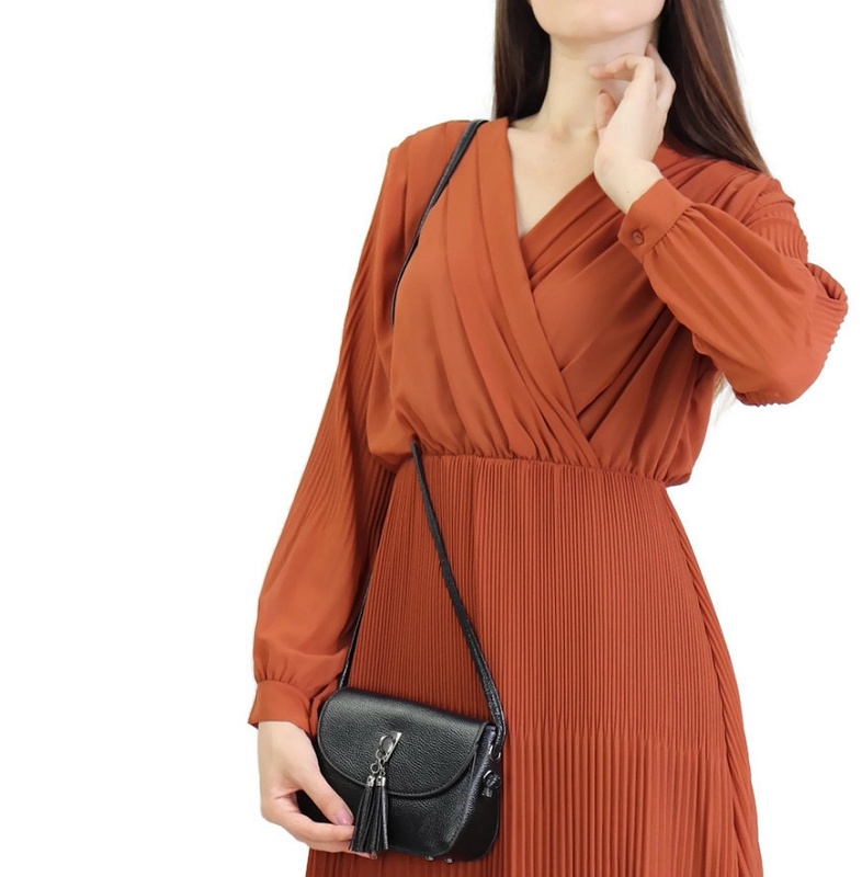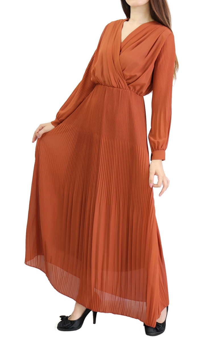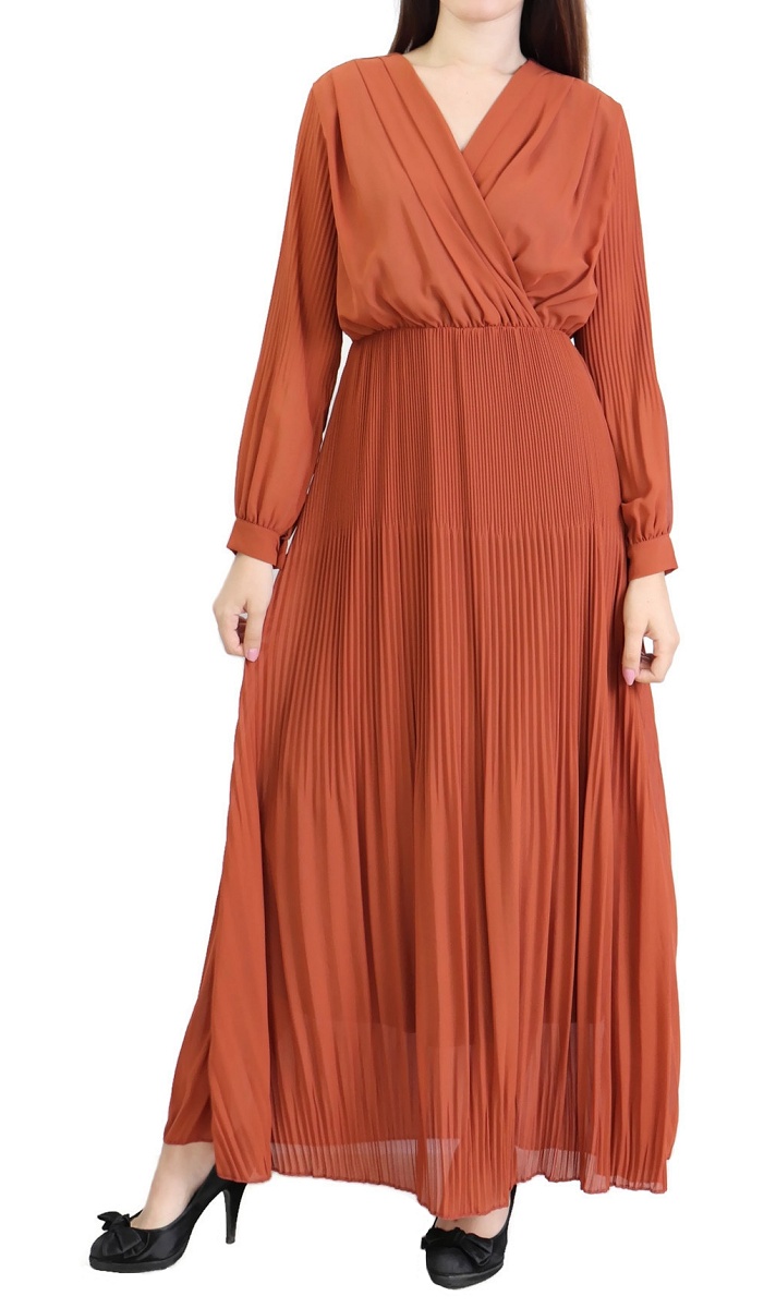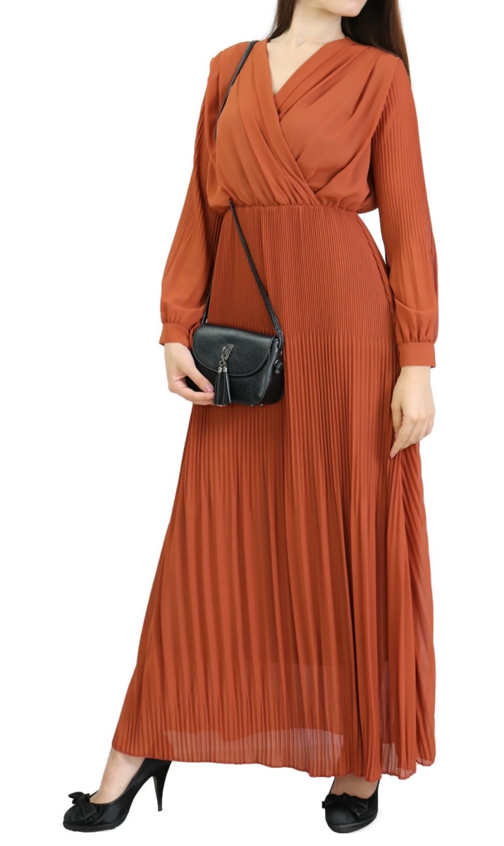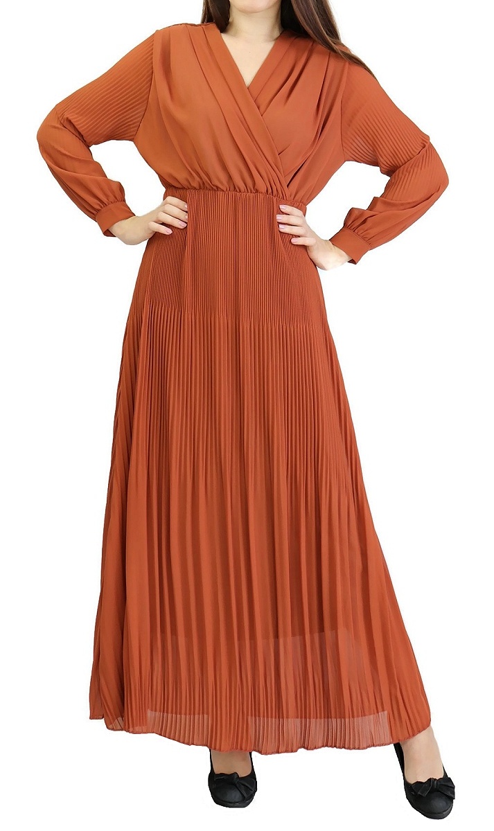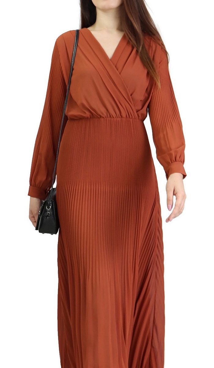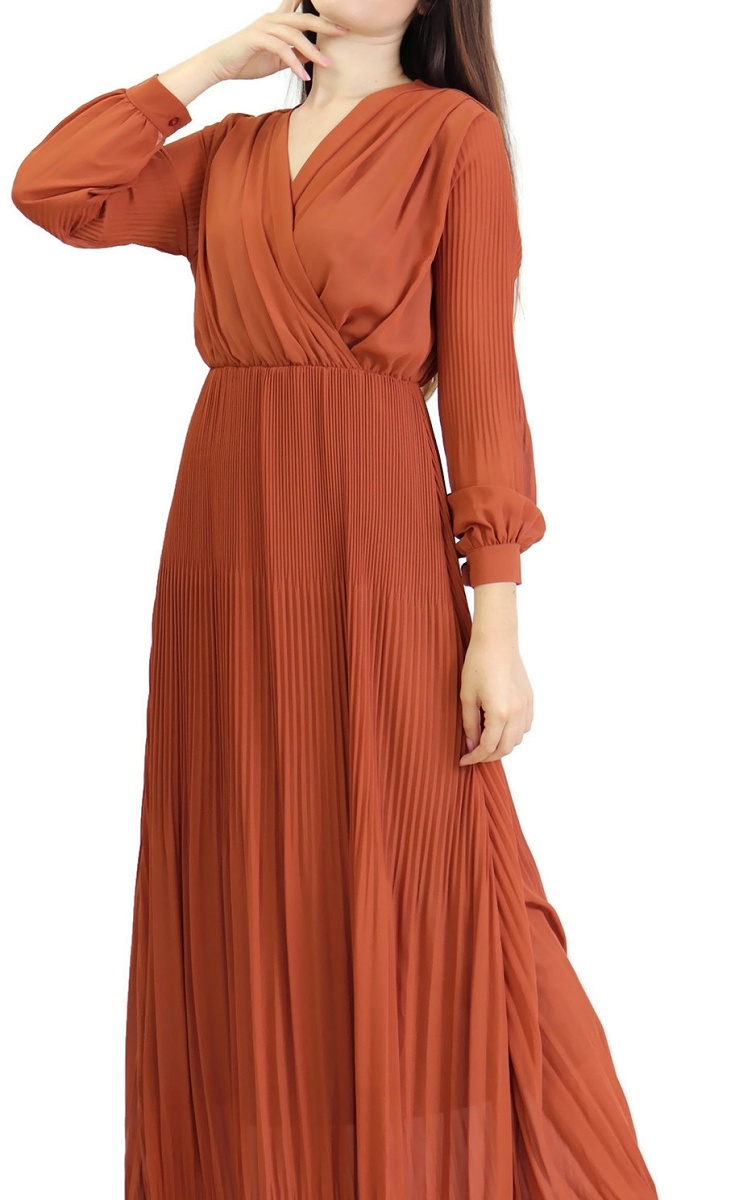 Robe longue cache-coeur plissée avec doublure - Couleur rouille Vetement & Accessoire