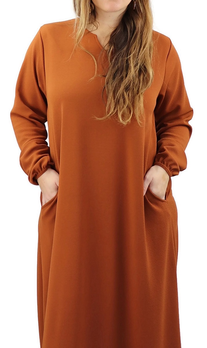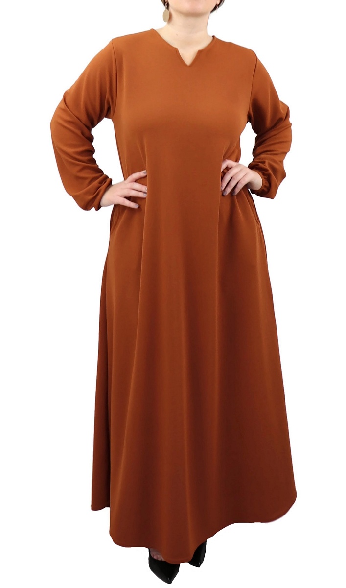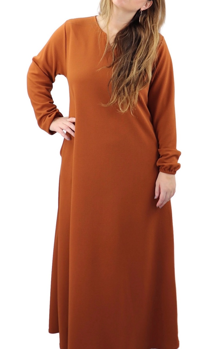 Robe longue casual basique evasee pour femme - Vetements et Robes Grandes Tailles pour femmes - Couleur Brique