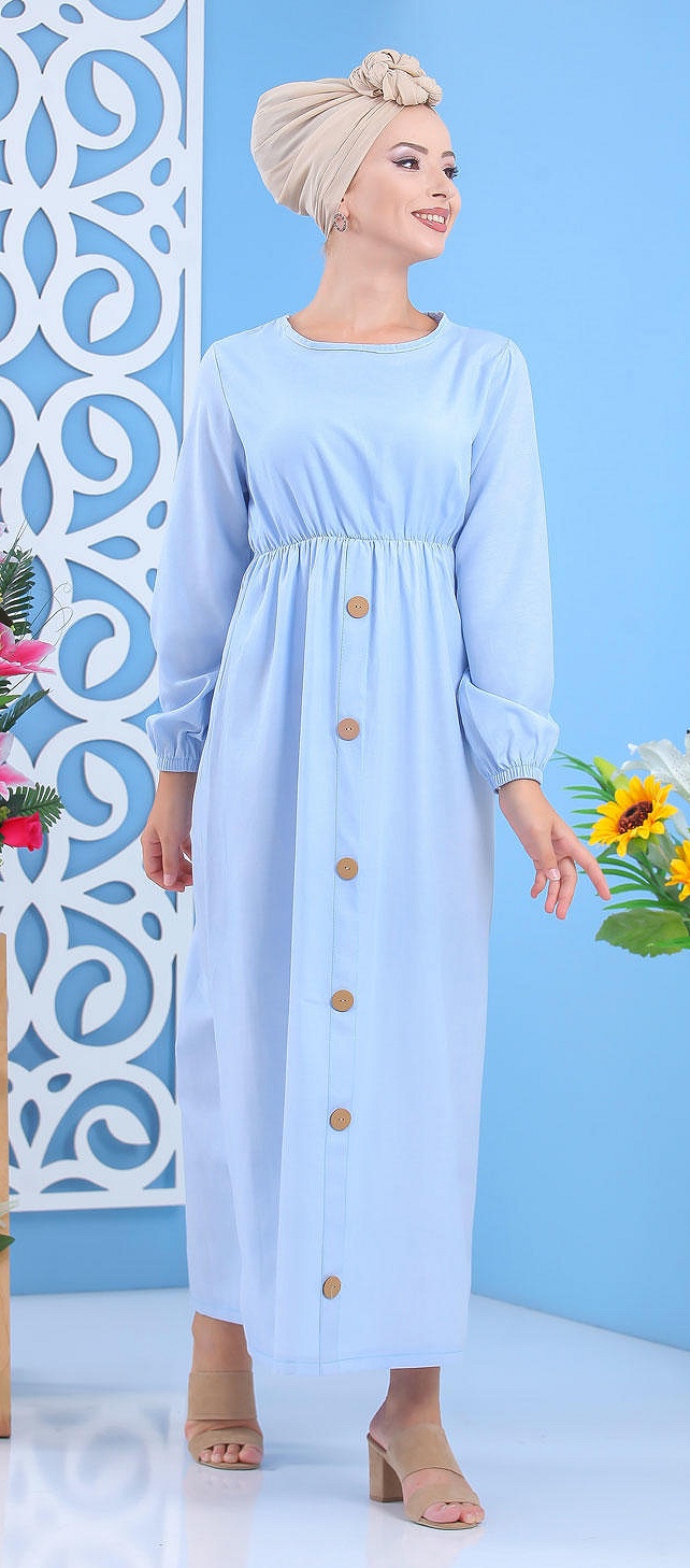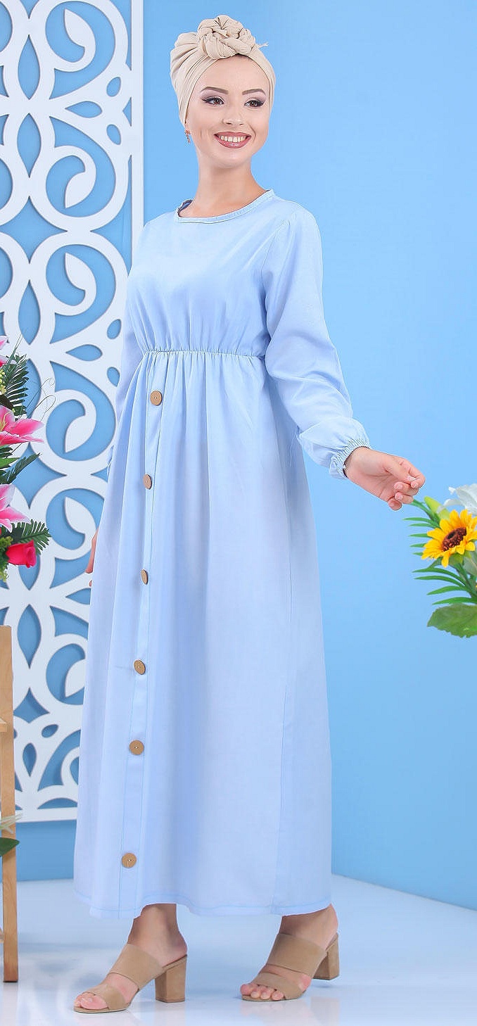 Robe longue cintrée de couleurs bleu ciel Vetement & Accessoire