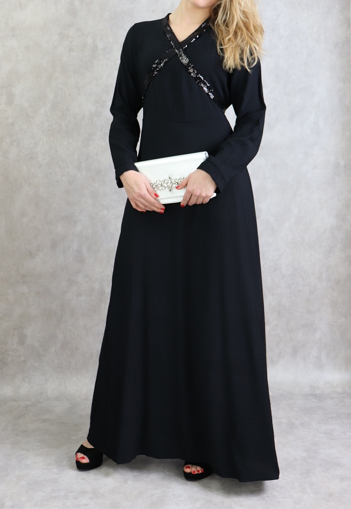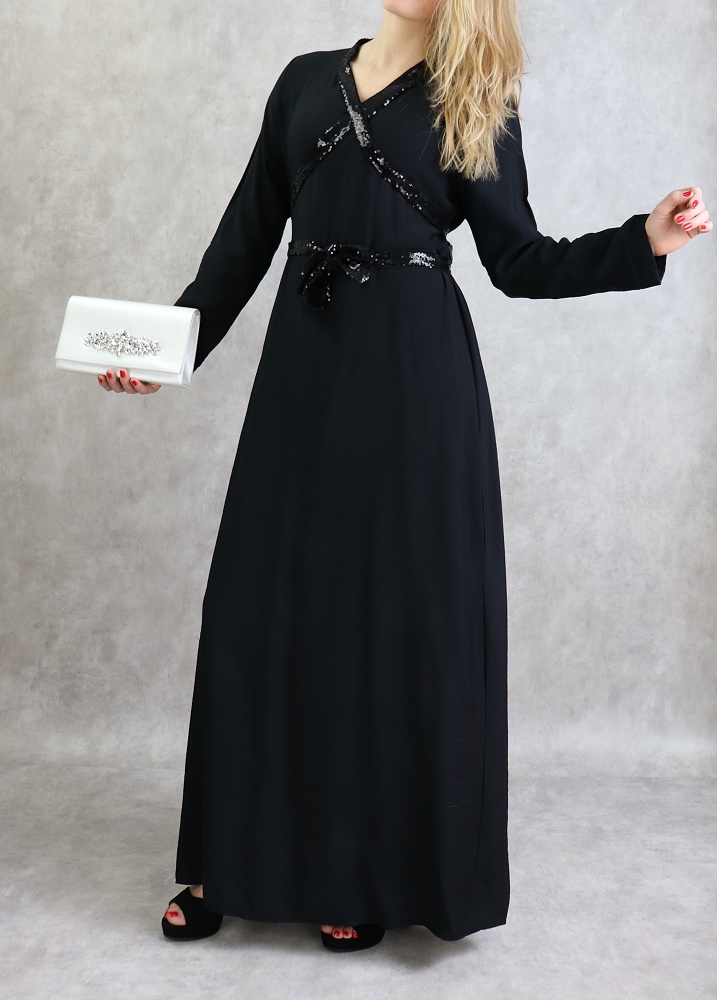 Robe de soirée Abaya avec kimono intégré (Kibaya) pour femme - Couleur Noir - REF. 34327 (29.90 €)