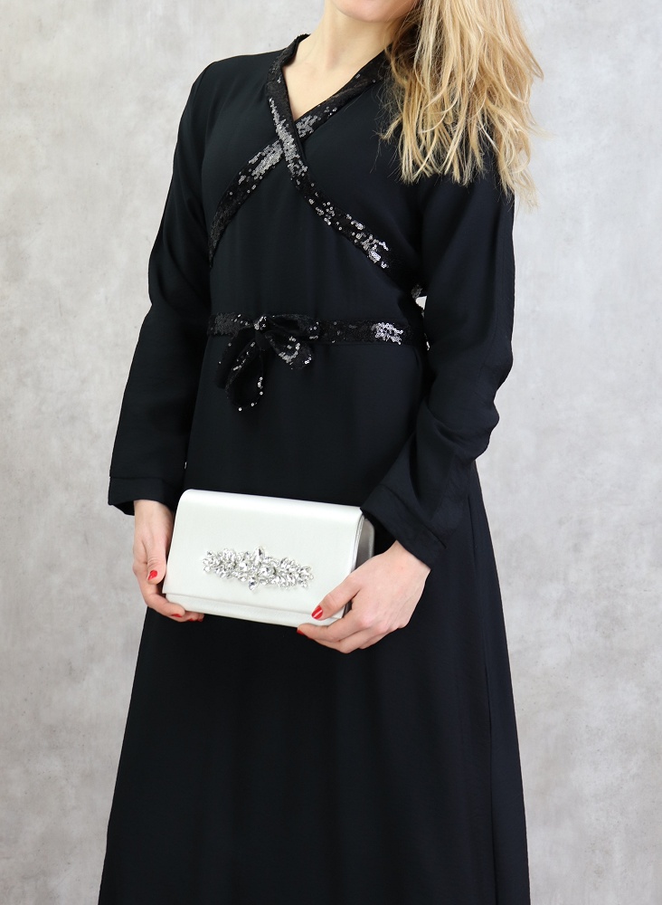 Robe longue croisée à strass de couleur noir Vetement & Accessoire