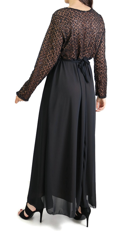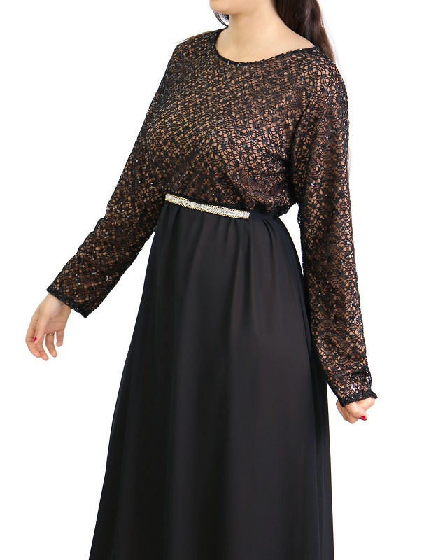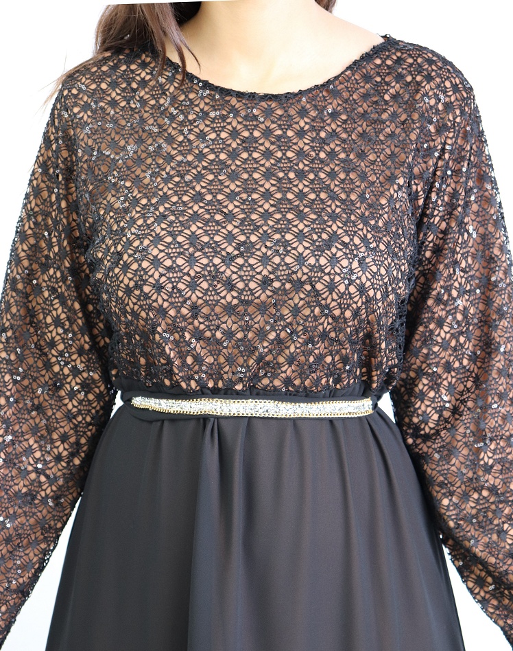 Robe longue avec dentelles et strass - Couleur noire - REF. 29511 (27.00 €)