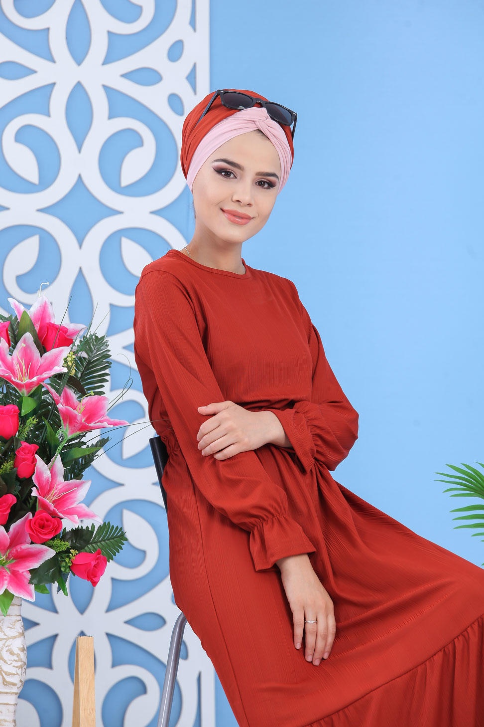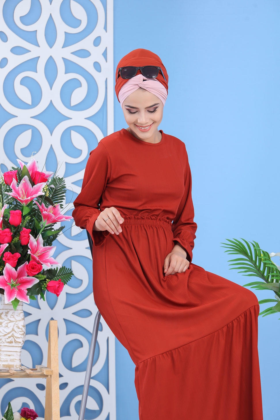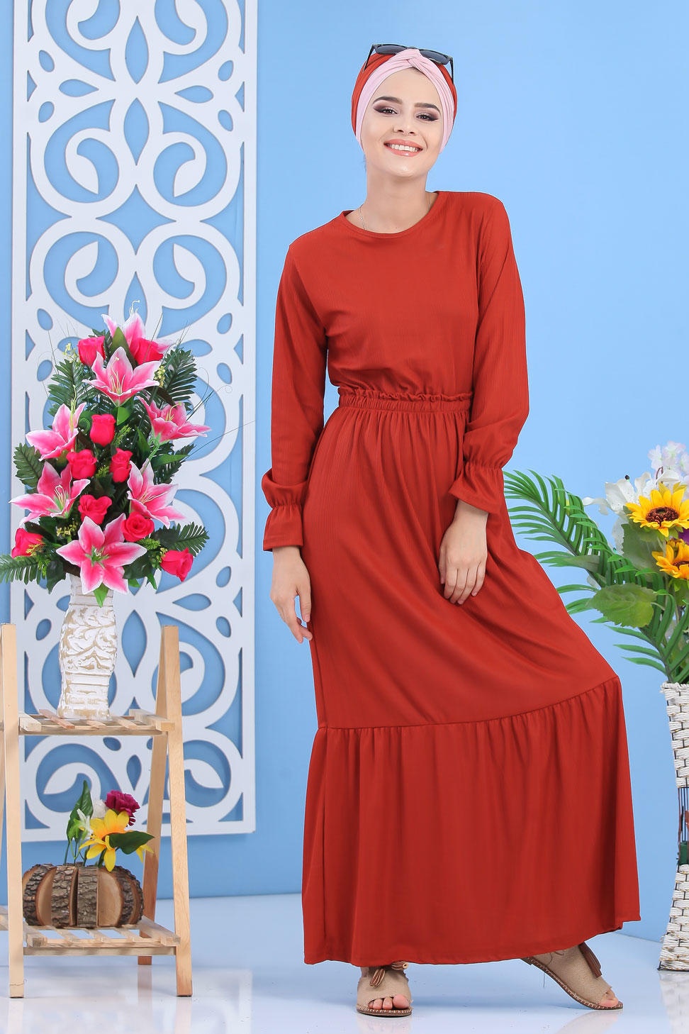 Robe longue decontractee effet strie pour femme - Couleur rouille