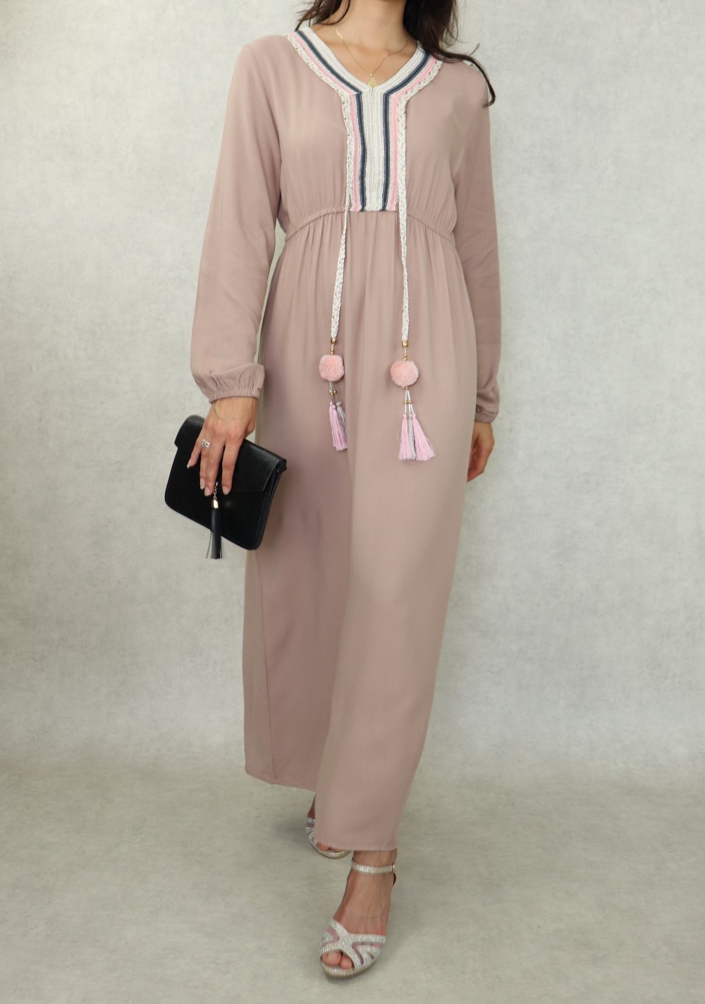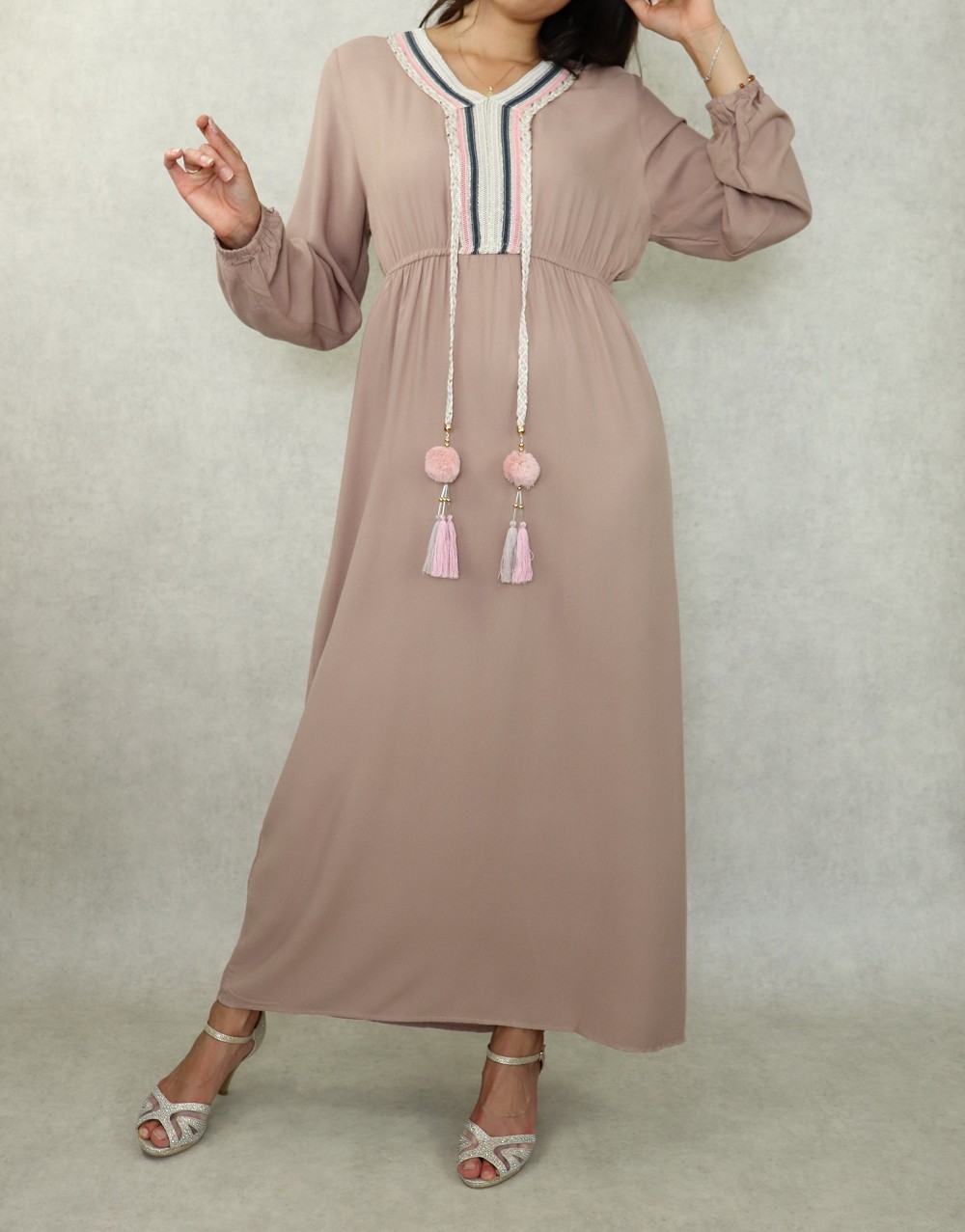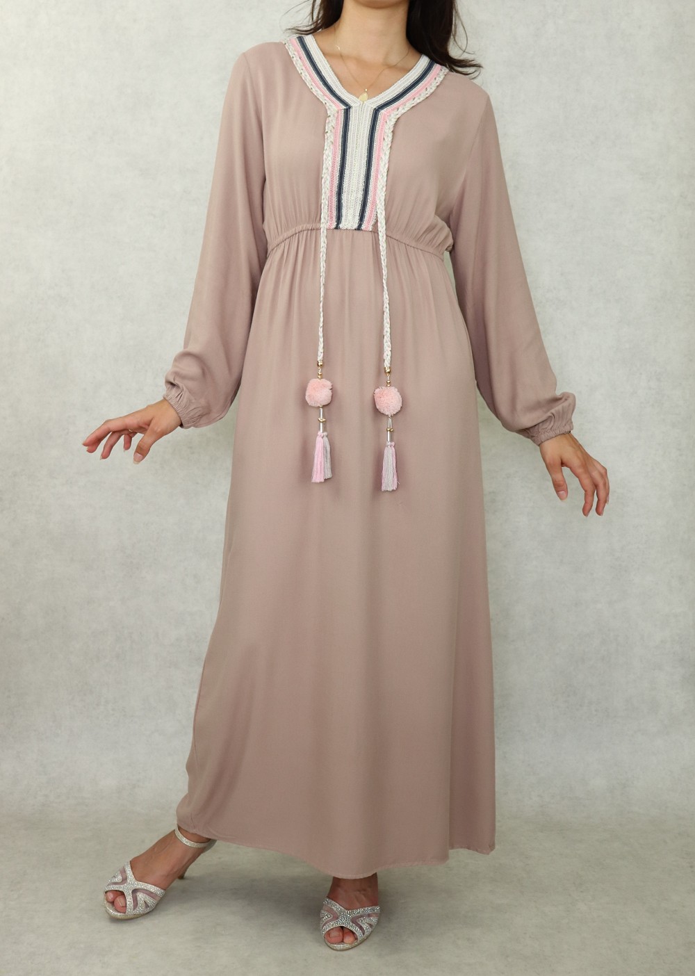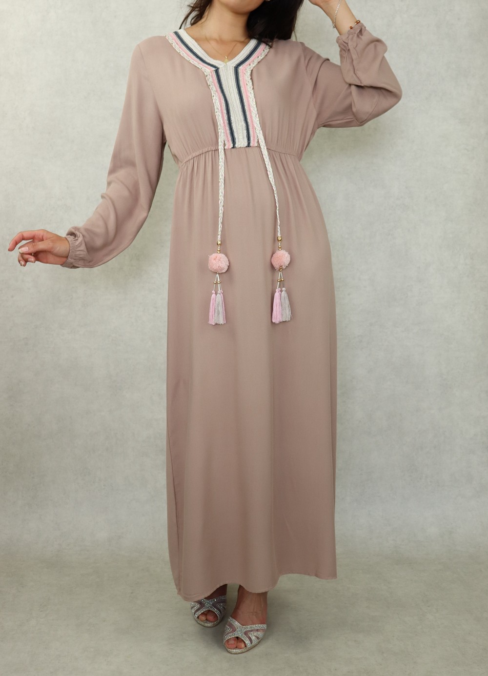Robe longue décorée de pompons pour femme - Couleur Beige Vetement & Accessoire