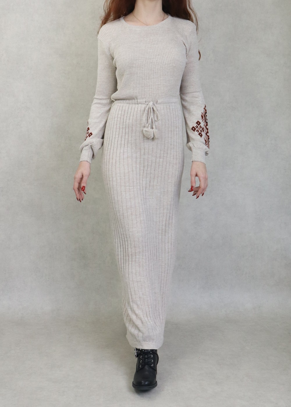 Ensemble en maille deux pièces tunique et jupe pour femme (Saison Automne-Hiver) - Couleur Crème - REF. 34053 (39.00 €)