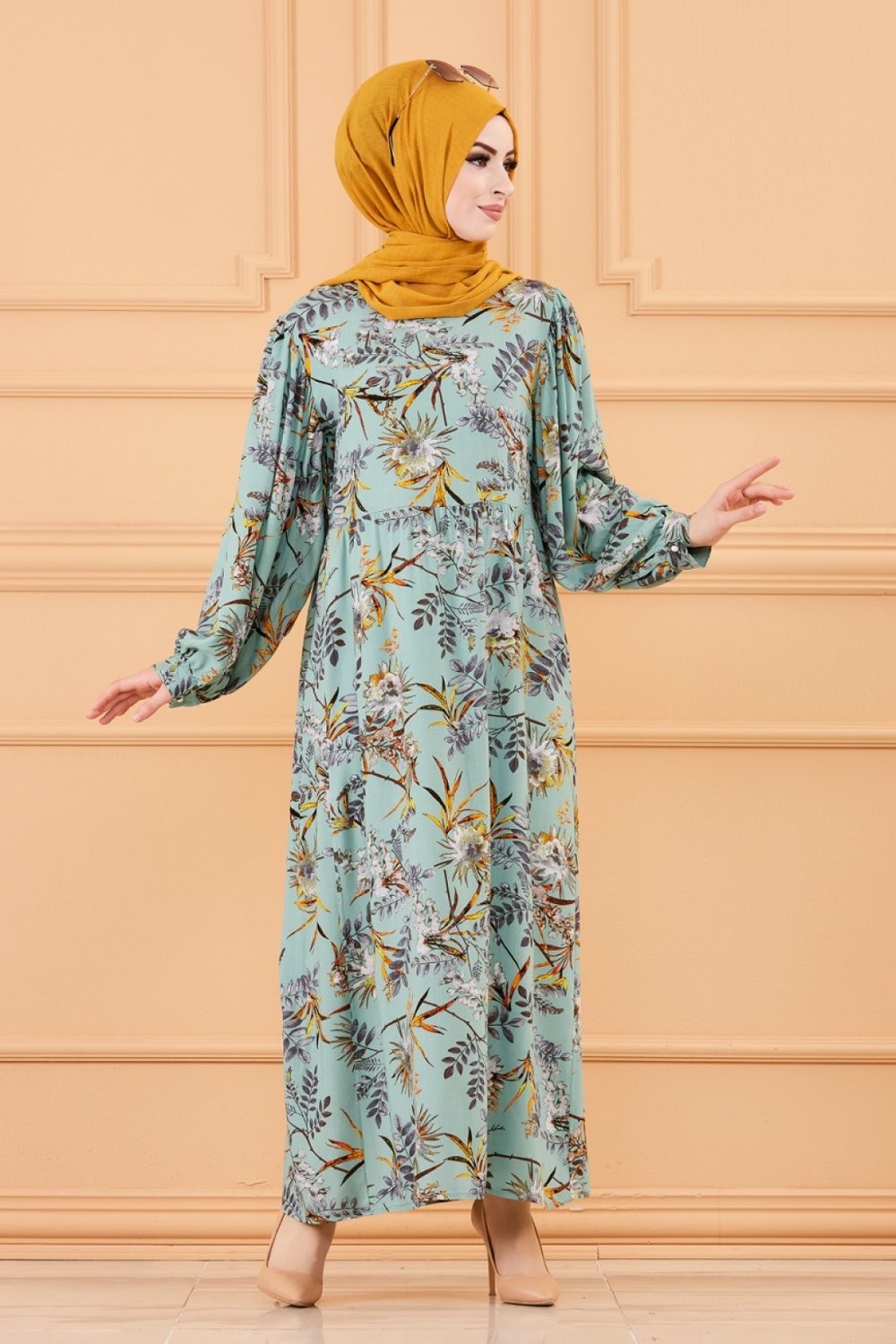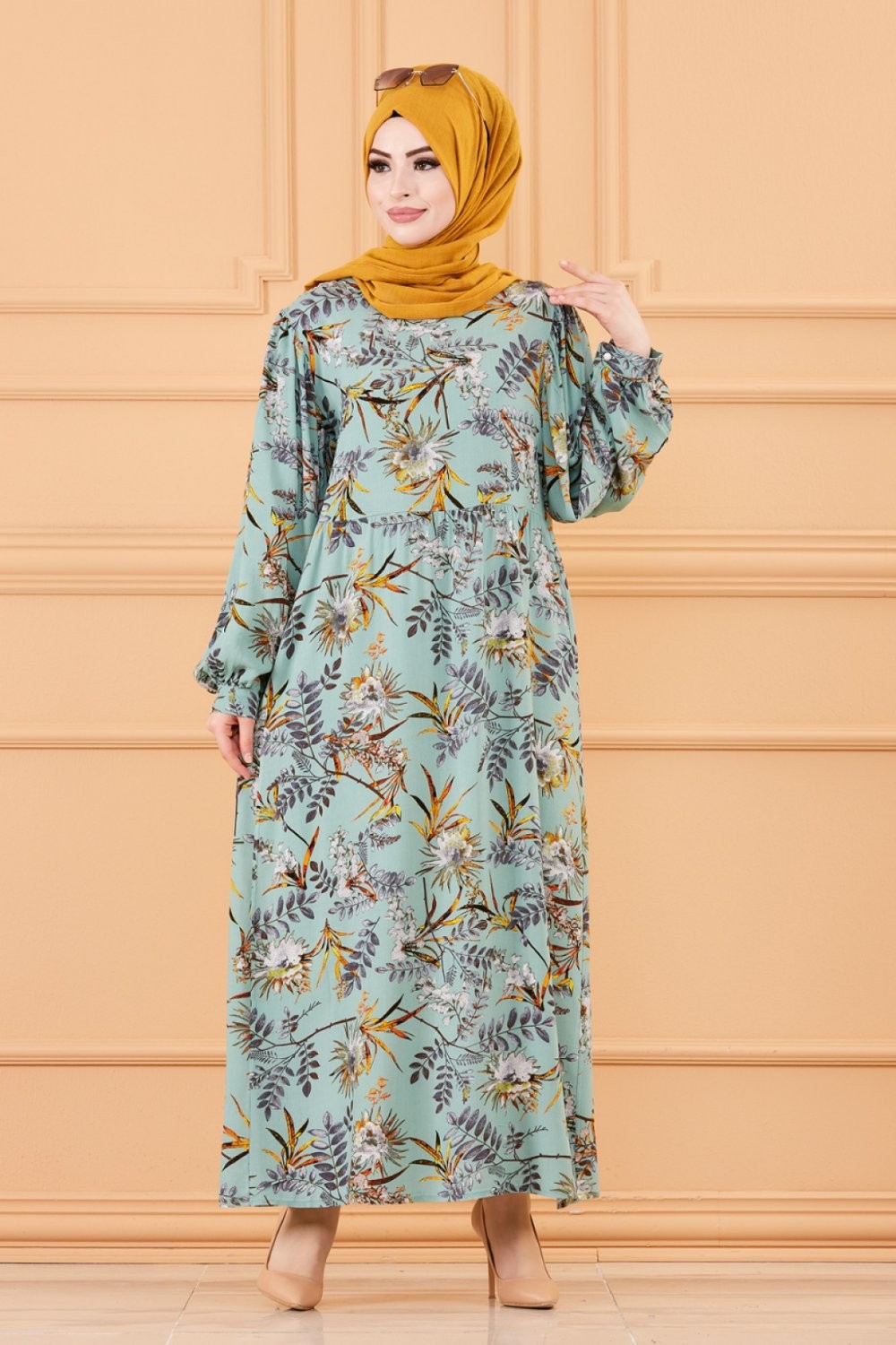 Robe longue et ample à fleurs pour femme (Vêtement musulmane) - Couleur menthe Vetement & Accessoire