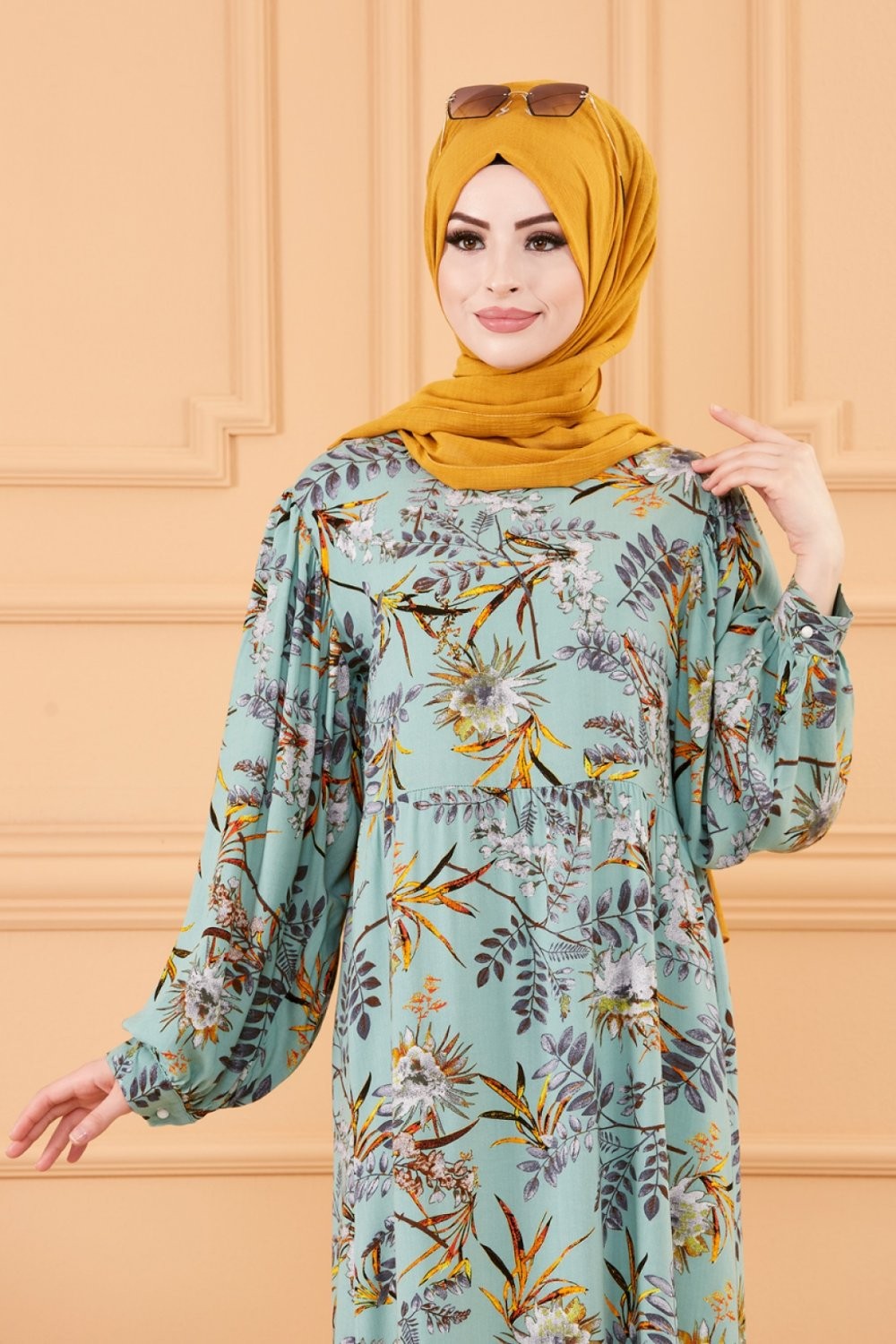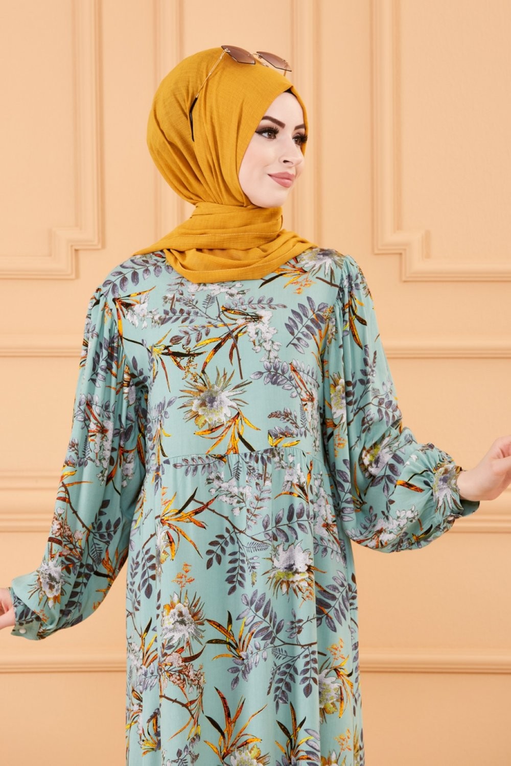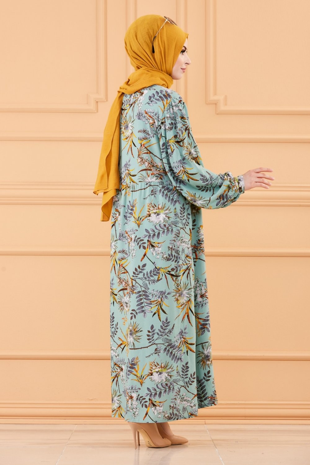 Robe longue et ample a fleurs pour femme (Vetement musulmane) - Couleur menthe