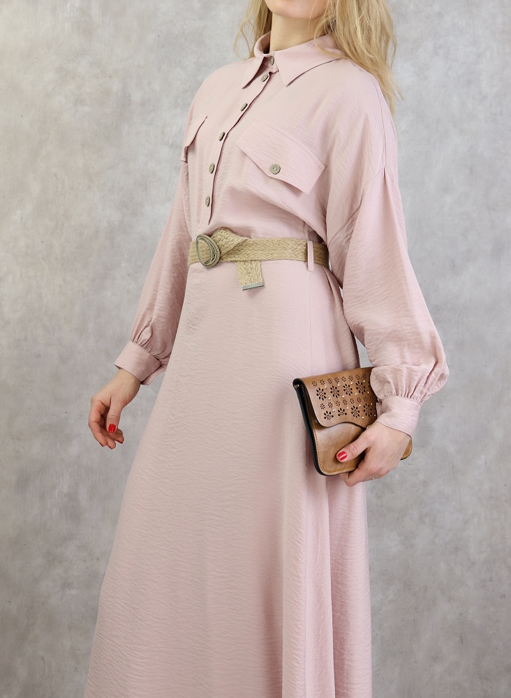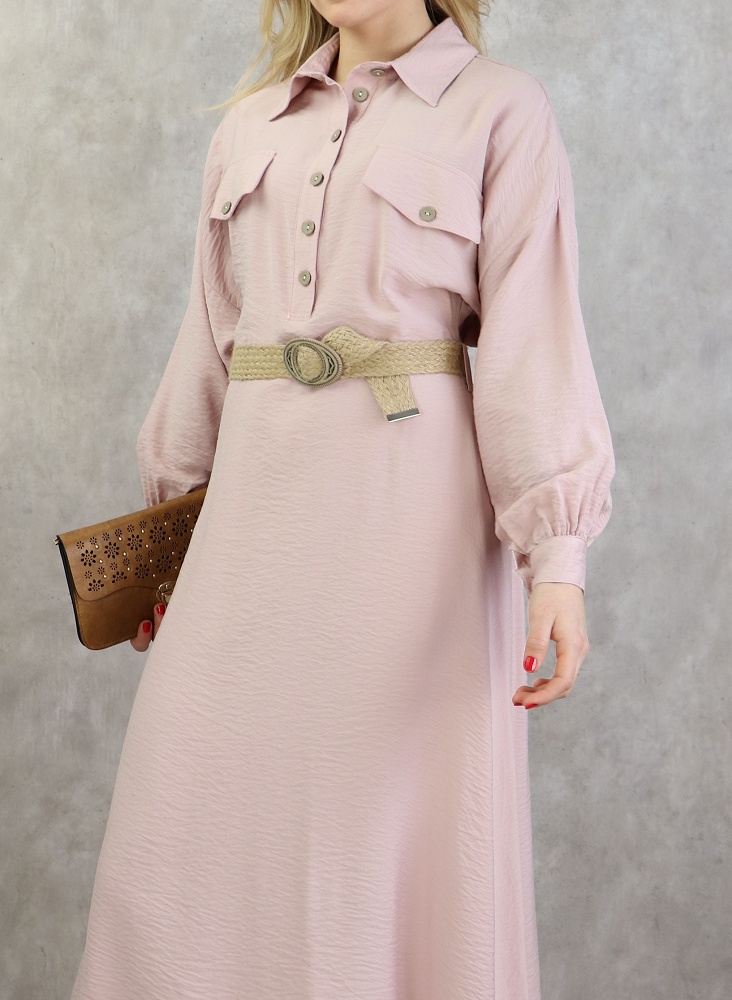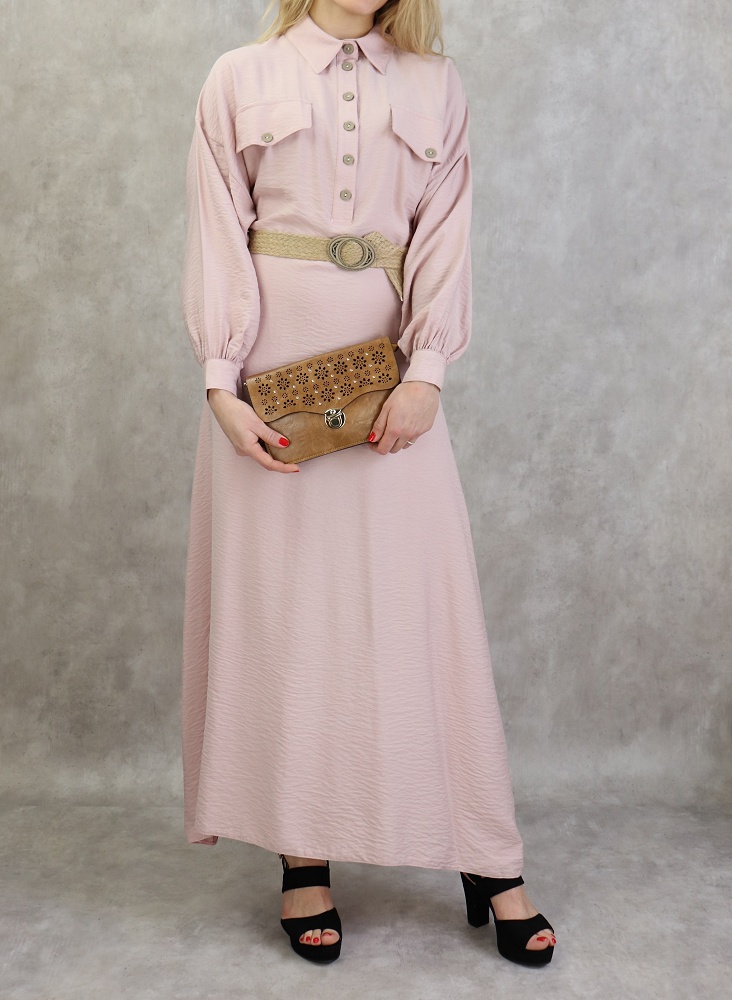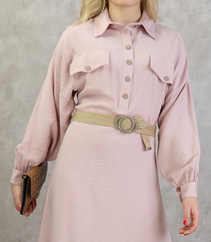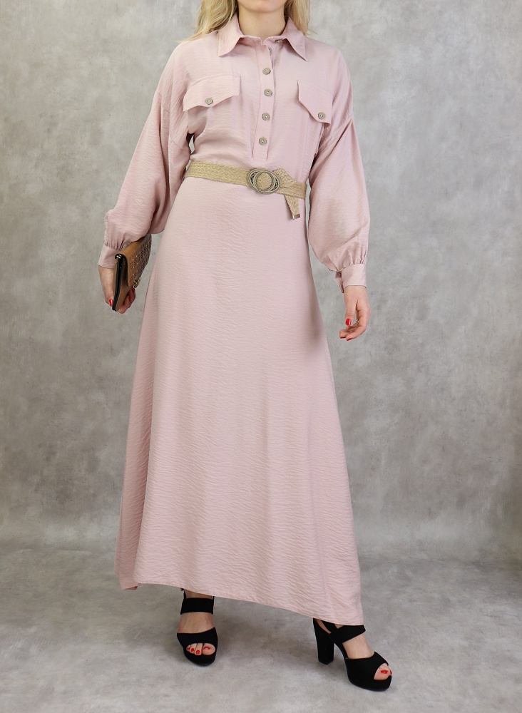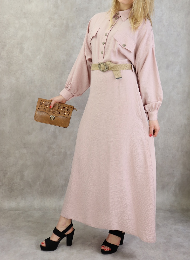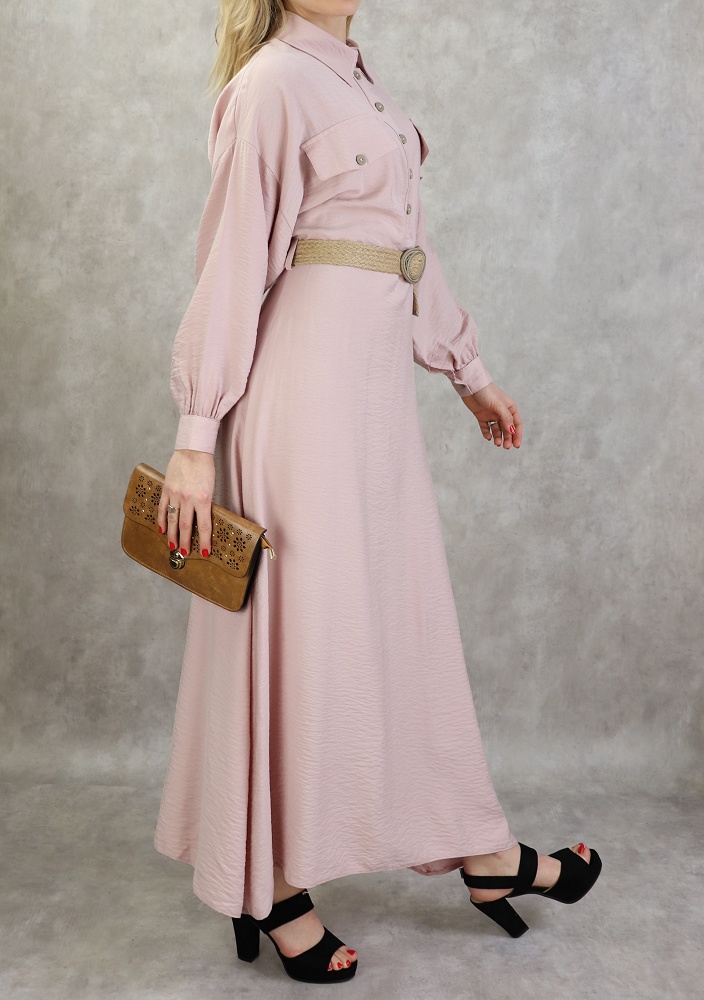 Robe longue évasée avec ceinture tressée - Couleur rose pale Vetement & Accessoire