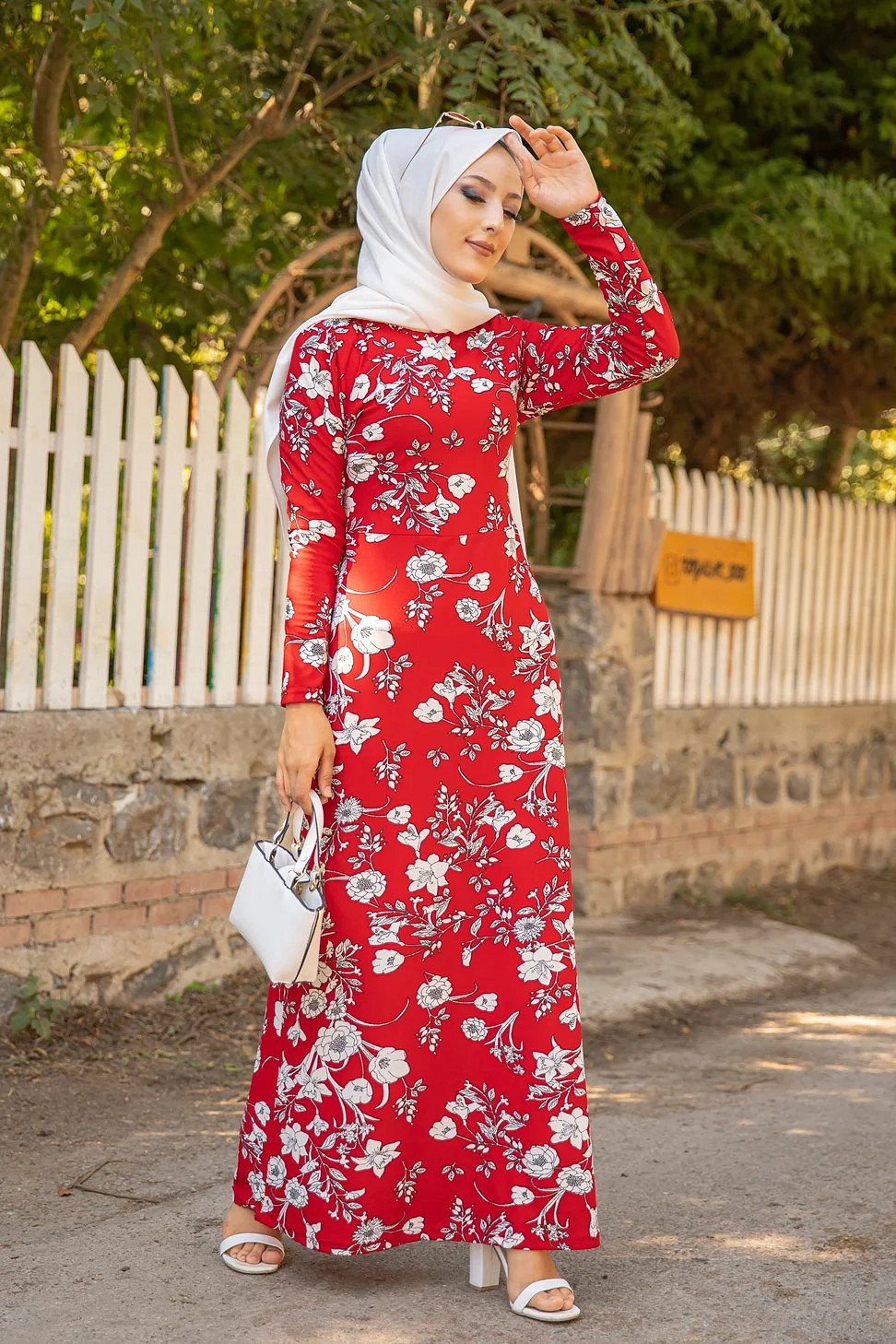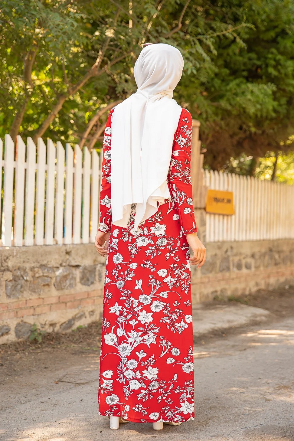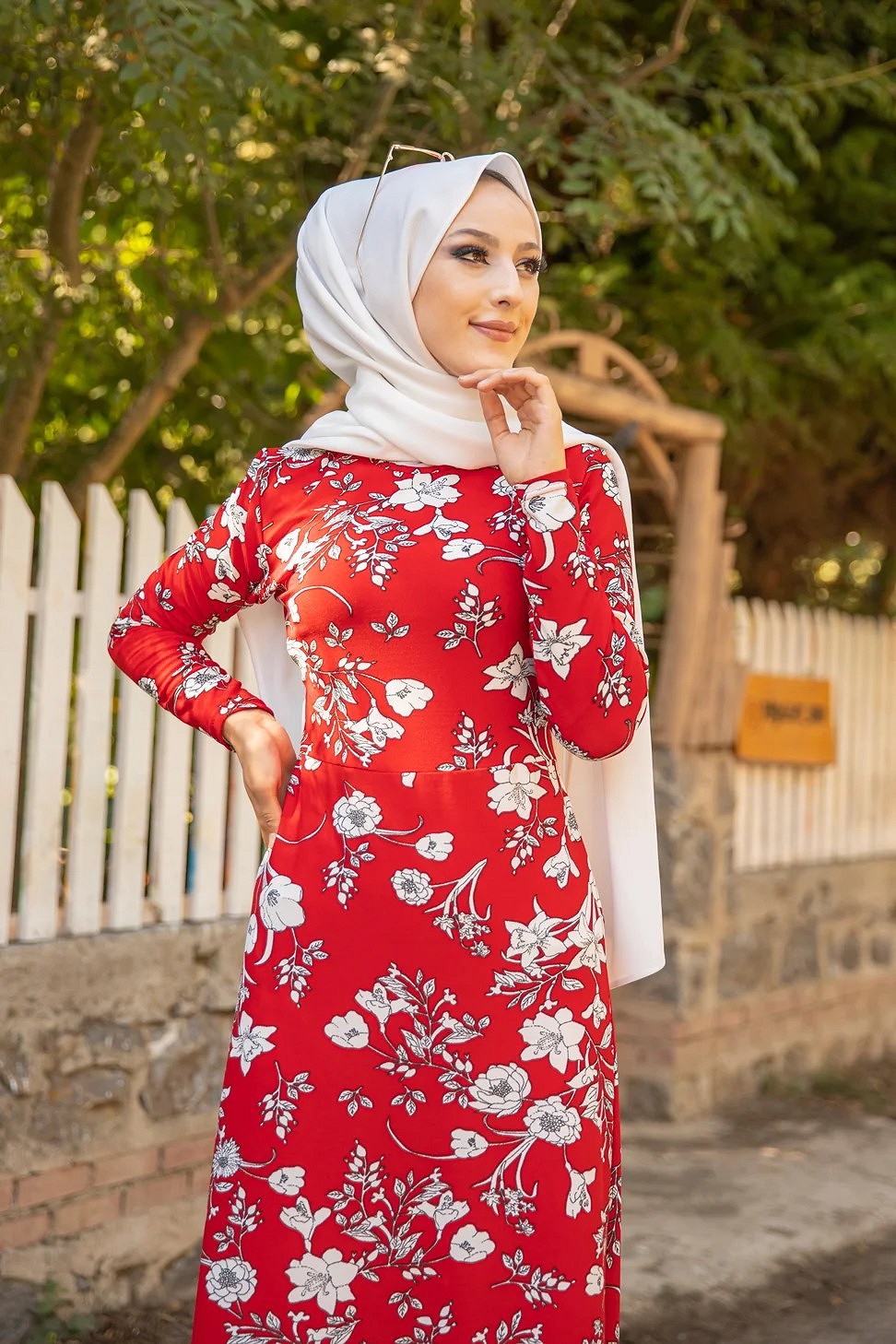 Robe longue à fleurs pour femme (Vêtements pour hijab) - Couleur rouge - REF. 35406 (19.90 €)