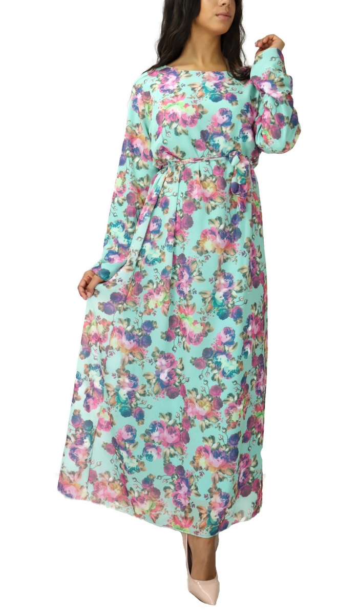 Robe longue, entièrement doublée, encolure ronde, manches longues, accompagnée d'une ceinture à nouer sous passants à la taille. Elégante et féminine, cette robe se porte en toutes occasions.
