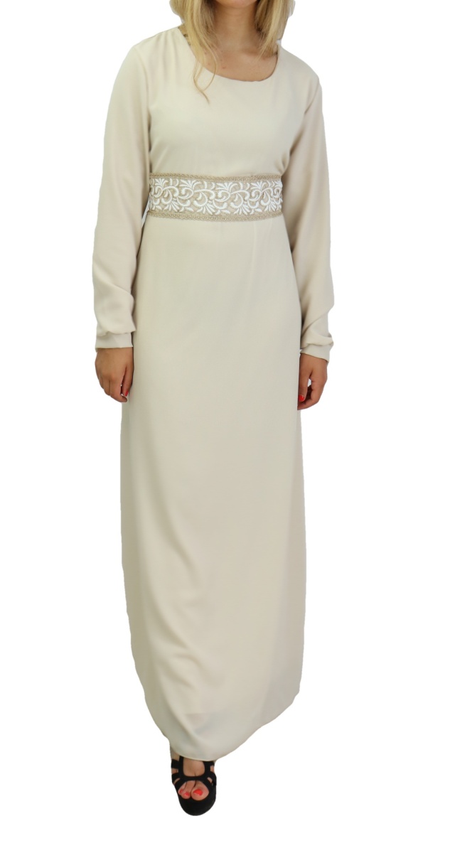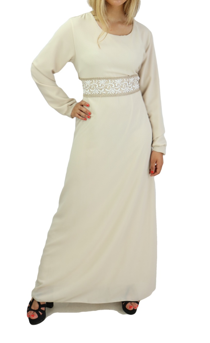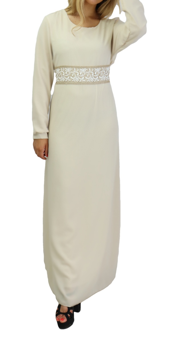 Robe brodée pour femme (Tenue élégante pour hijab) - Couleur beige - REF. 37081 (26.90 €)